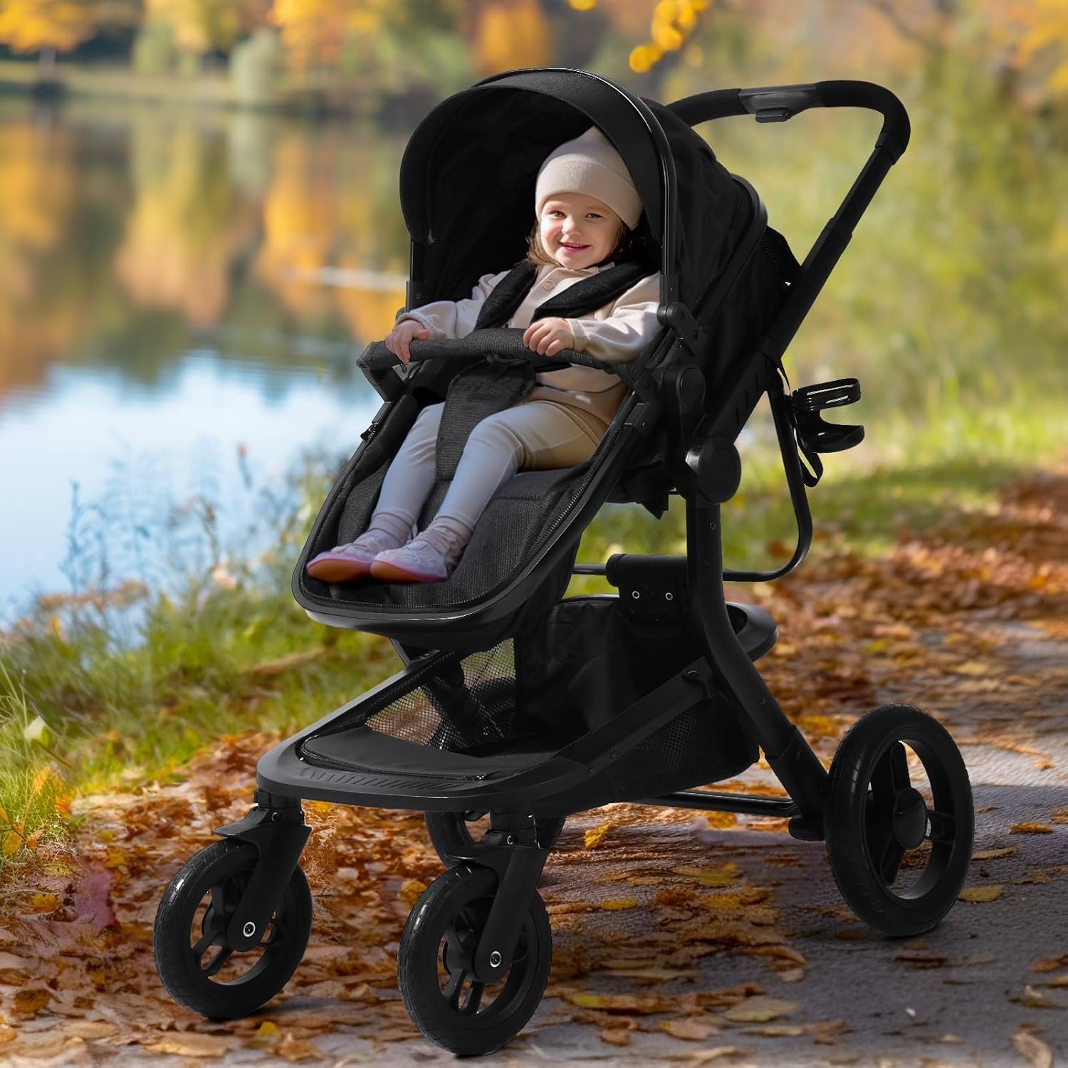 VERSATILE 2-IN-1 DESIGN: Discover the joy of parenting with our convertible baby stroller that effortlessly transitions between infant stroller and bassinet modes. Your little one will enjoy a cozy seat for exploration or a fully reclining bassinet for peaceful naps, all with quick and easy mode changes. Choose the parent-facing option for connection or the outward-facing position for visual stimulation