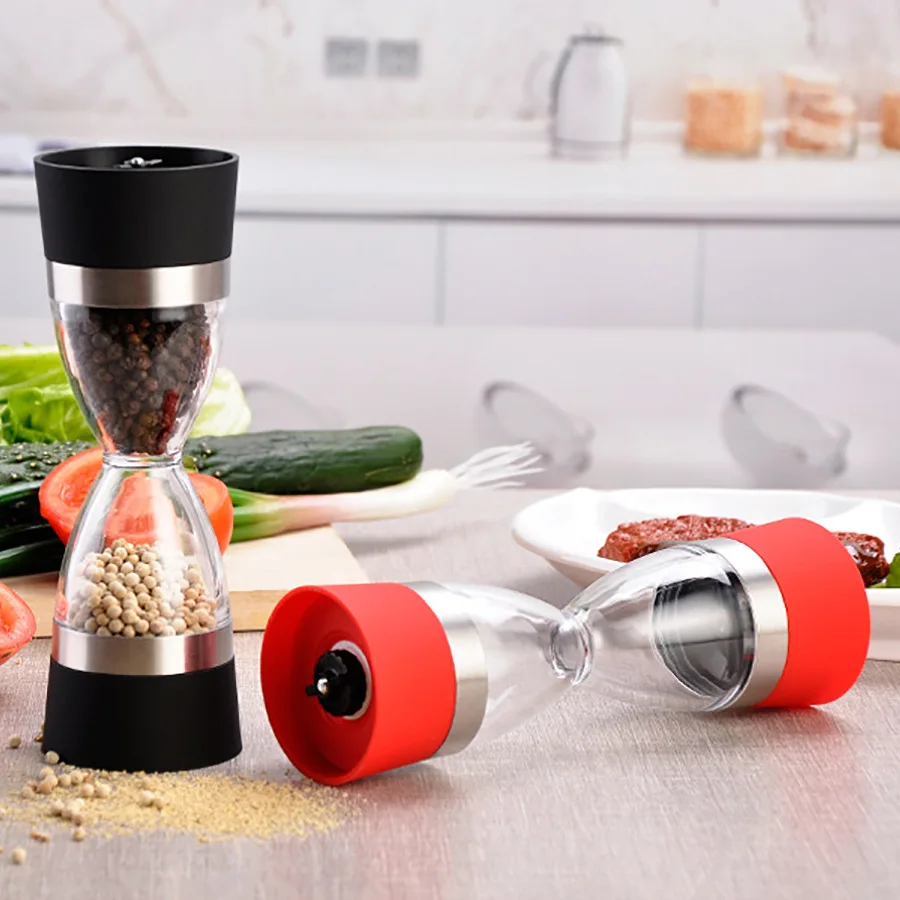 2 in 1 Hourglass Shape Manual Salt Pepper Mill Spice Grinder Pepper Shaker Salt and Pepper Grinder Kitchen Gadgets Cooking Tool