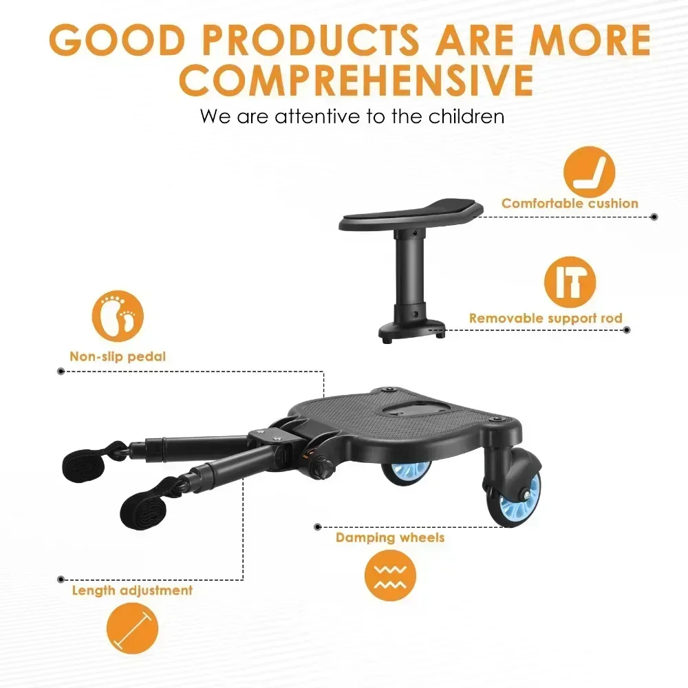 2 in 1 Universal Strollers Step Board Adapter with Seat Second Child Jogger Twins Scooter Baby Pram Hitchhiker Bumper Footboard