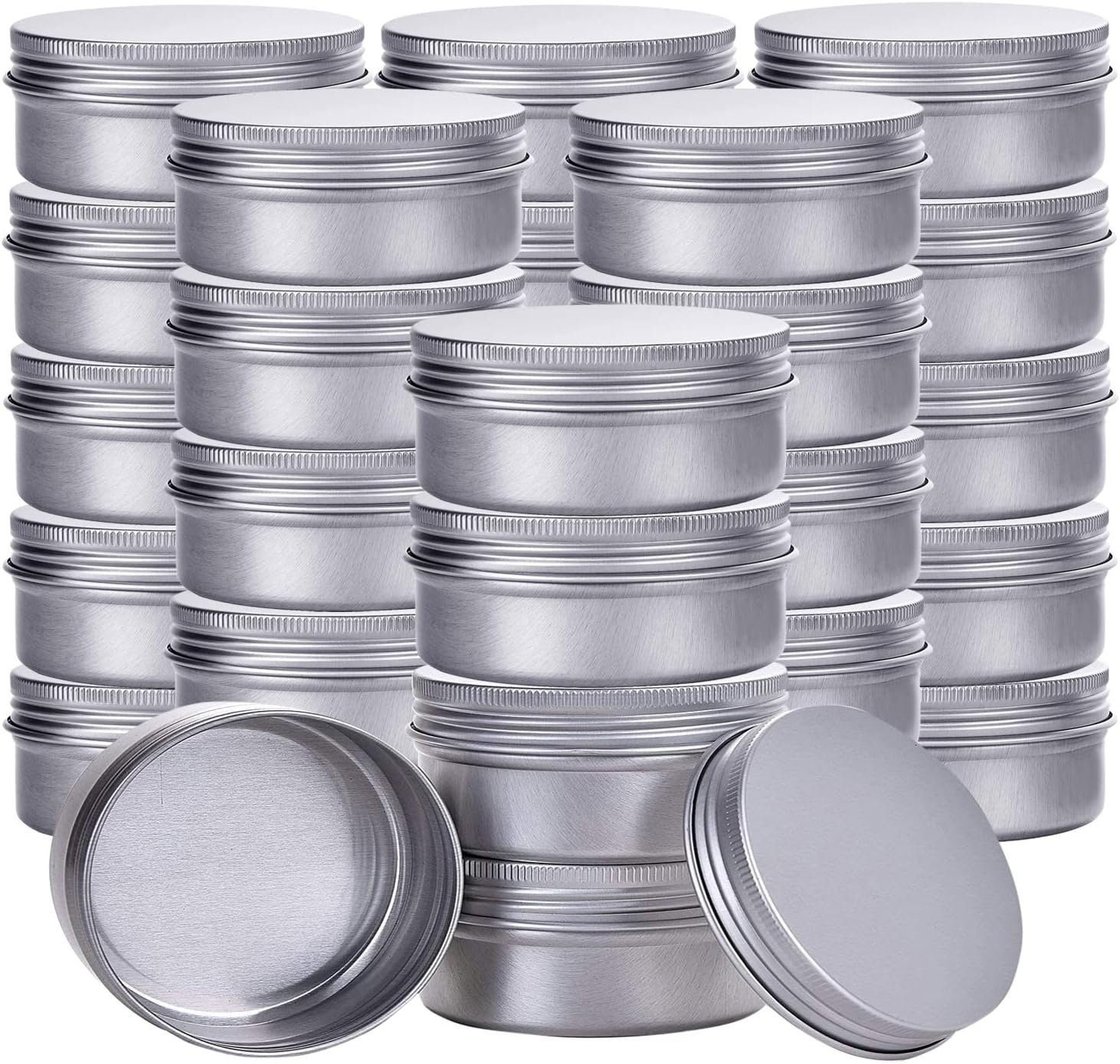 2 Ounce Aluminum Tin Jar Refillable Containers 60 ml Aluminum Screw Lid Round Tin Container Bottle for Cosmetic,Lip Balm, Cream, 50 Pack