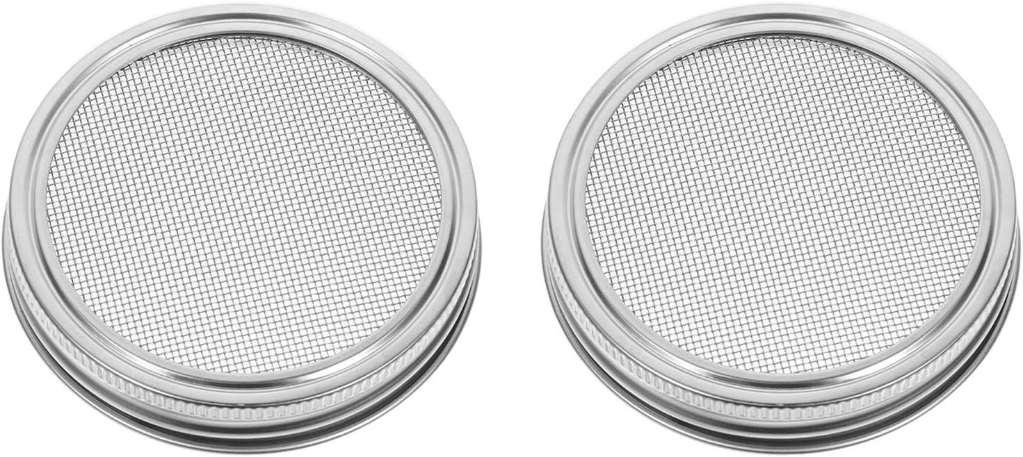 2 Pack 304 Stainless Steel Sprouting Lids Set, Mason jar Sprouting Lids for 82mm/3.2in Wide Mouth Mason Fresh Sprouts at Home Mesh Strainer Jar Sprouting Jars for Growing Broccoli Alfalfa Beans