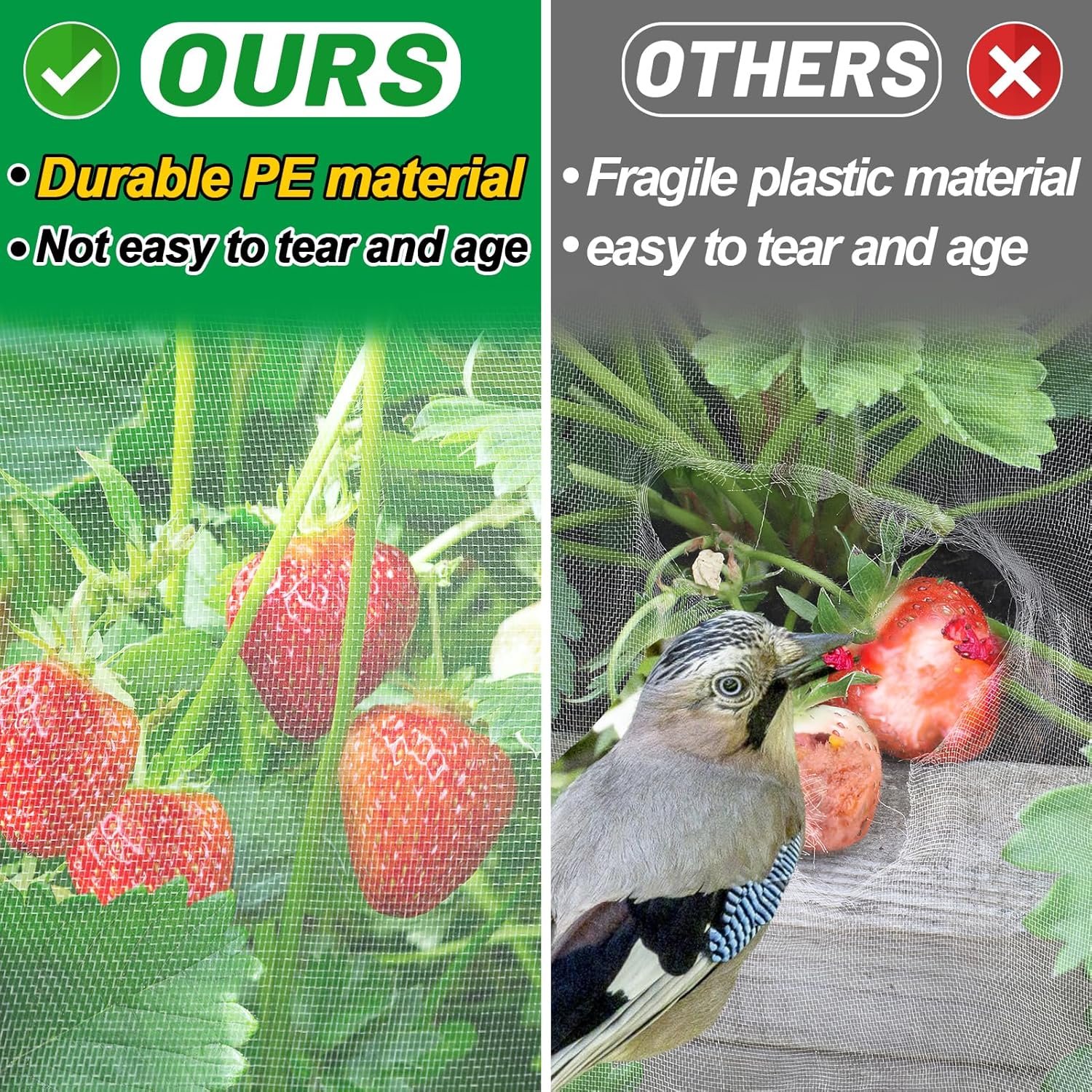 Premium & Durable Material: Our mesh net plant cover is made of high-quality PE material featuring sturdy and durable, which can do its job to protect your plants from animals and birds. If it is well preserved, it will be reused many times. The garden screen netting will provide your plants with a healthier growth environment, and make them grow better.