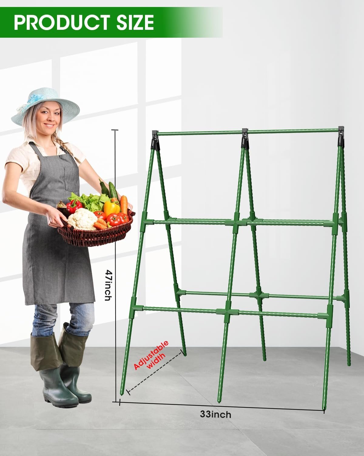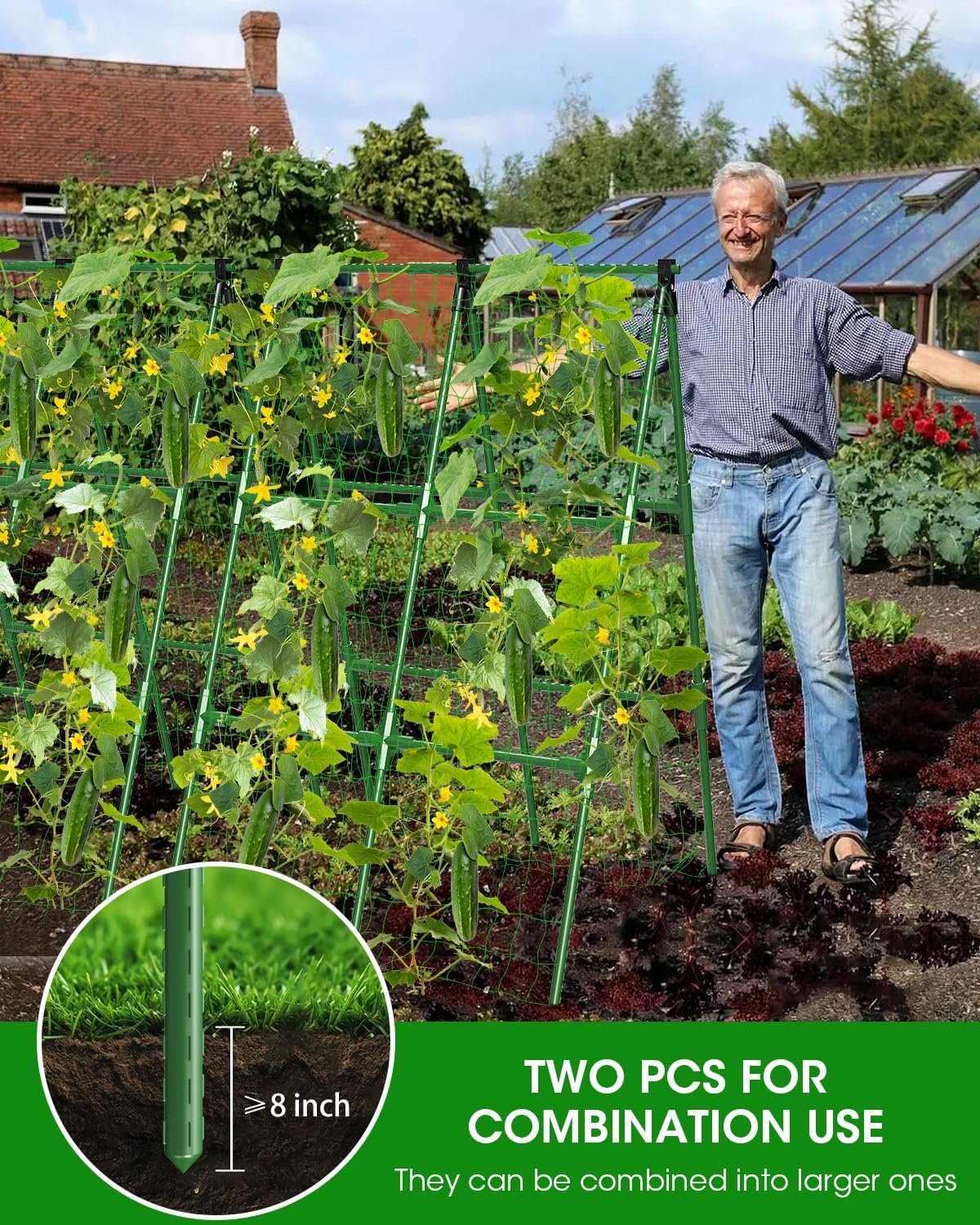 【A-Frame Trellis】Our detachable Cucumber Trellis is widely used in gardens and backyards; It allows you to adjust the width as needed for compact storage; By utilizing vertical space, this Plant Grow Support elevates vines off the ground, maximizing sunlight exposure for better quality fruits and vegetables while boosting overall harvest and yield
