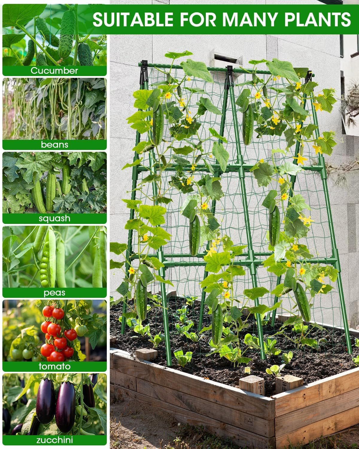 Definitely! The open Cucumber Trellis makes harvesting a breeze. Unlike traditional trellises, its accessible design lets you pick cucumbers, beans, or squash effortlessly—no more bending or wrestling with tangled vines!