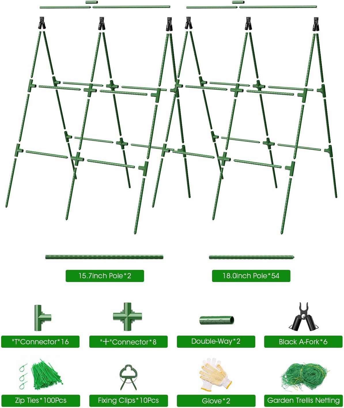 【Easy Installation】Garden trellis for climbing plants outdoor is reusable, washable and detachable, ensuring you can enjoy its benefits season after season; One person can easily set it up without any hassle; Upgraded equal cross fittings and equal tee fittings are easier to install and more stable than metal snap fittings