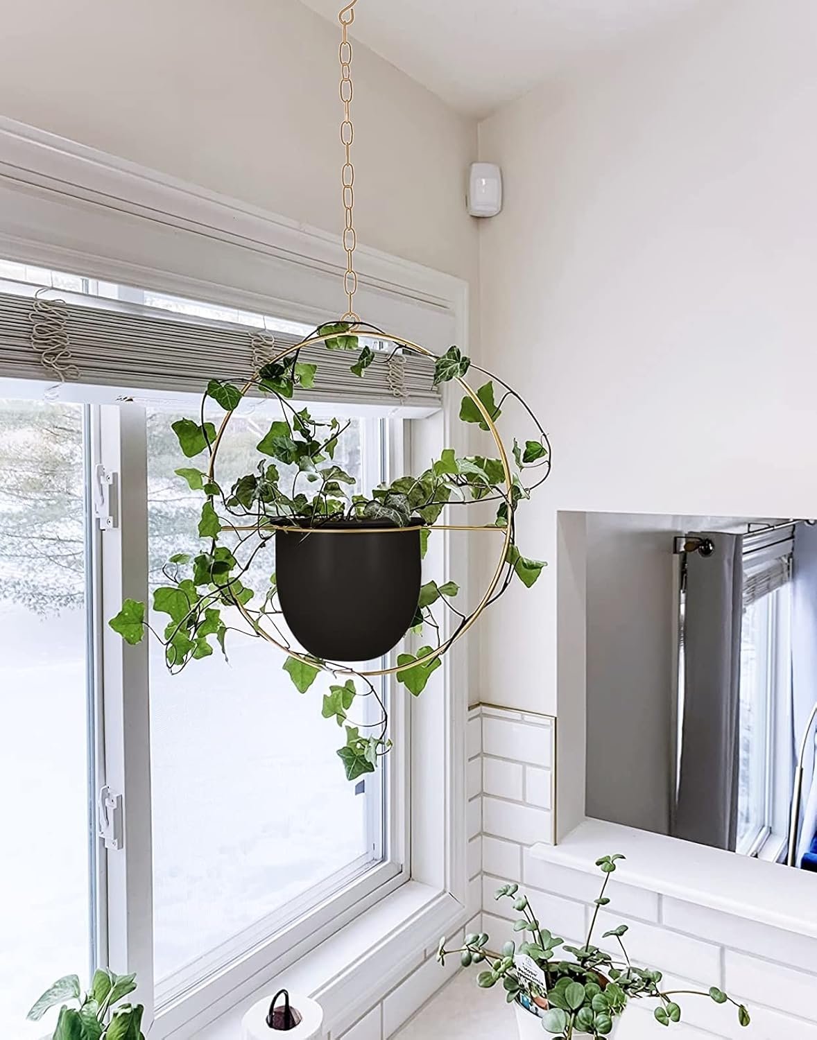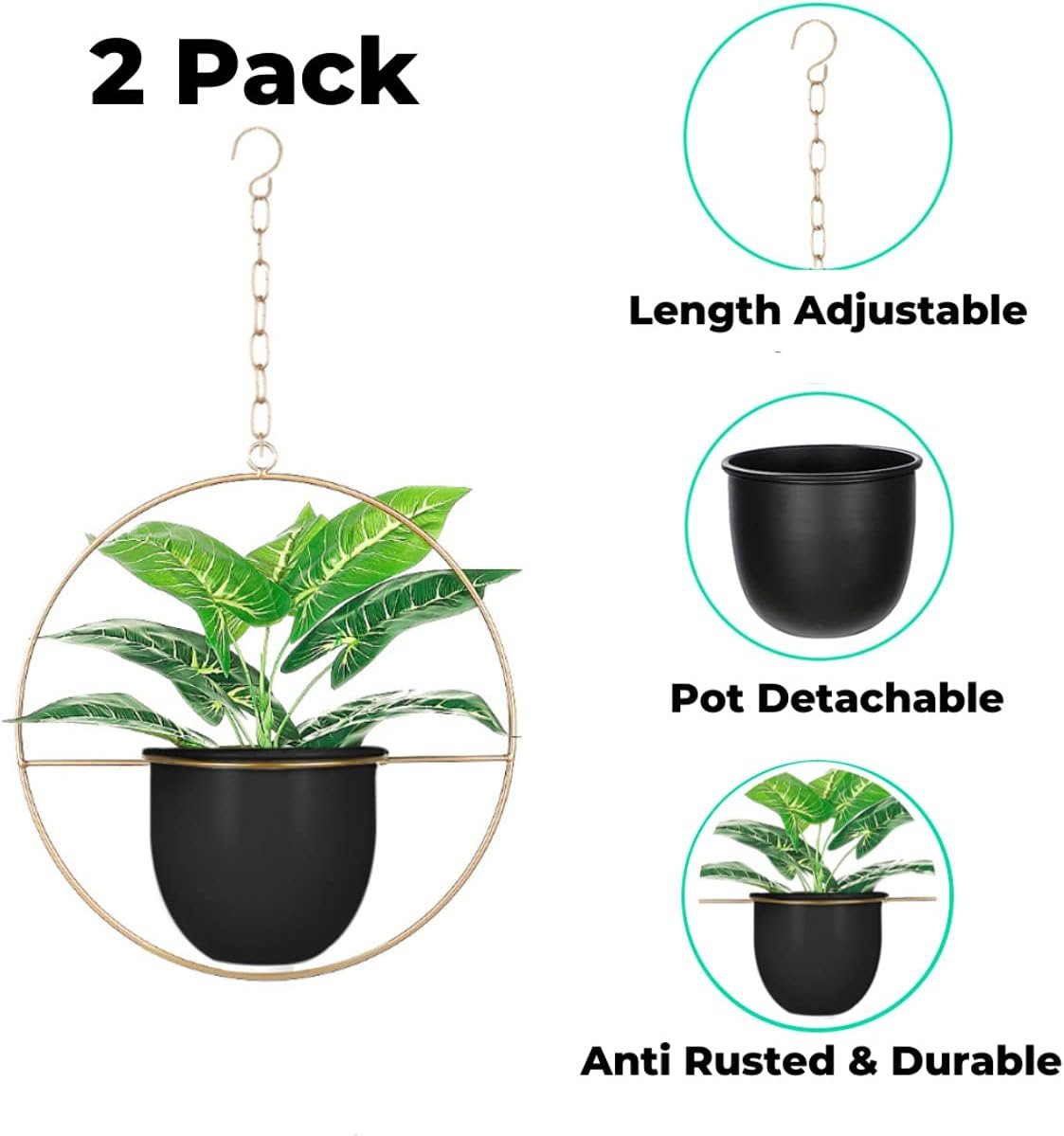 2 Pack Hanging Planters for Indoor Plants with 5.5″ Pot + Ceiling Hook + Extender Chain | Hanging Plant Holder, Metal Minimalist Planter, NO Plant incld