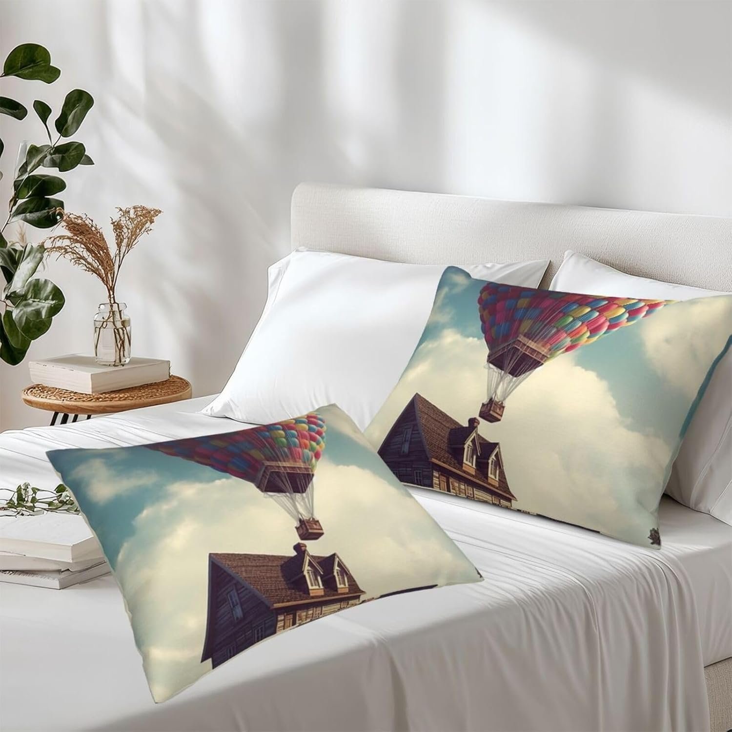 Standard Pillow Cases Set of 2 – The includes 2 pillowcases: 20″ x 26″ which will fit Queen size pillows. Hot Air Balloon Wooden House pillow covers set are many options for colours to suit your bedroom decor