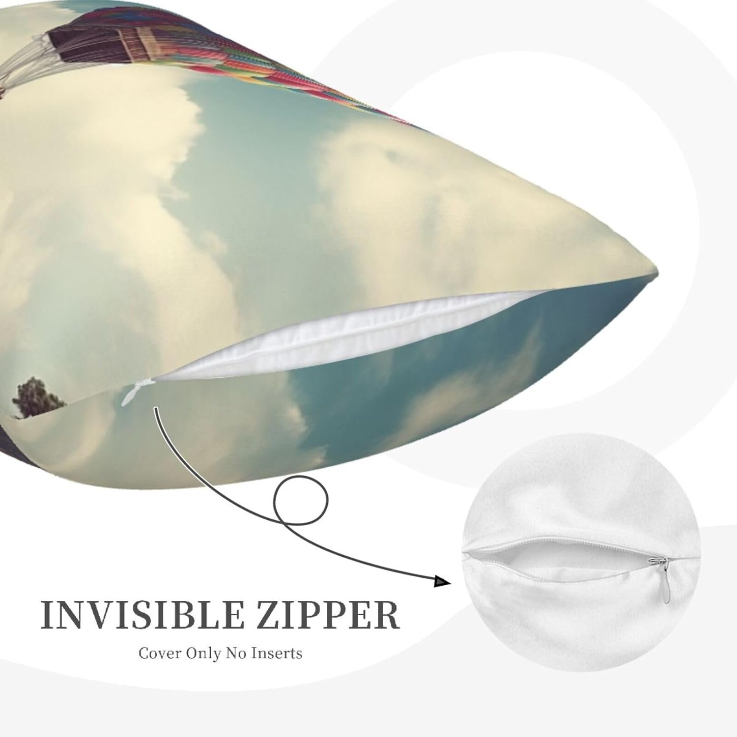 Convenient Hidden Zipper: Each zip up pillow case features a hidden zipper, ensuring a secure and seamless fit for your pillows. No more loose ends or uncomfortable sleep interruptions. Bed pillow covers with zipper. Hot Air Balloon Wooden House zippered pillow cases