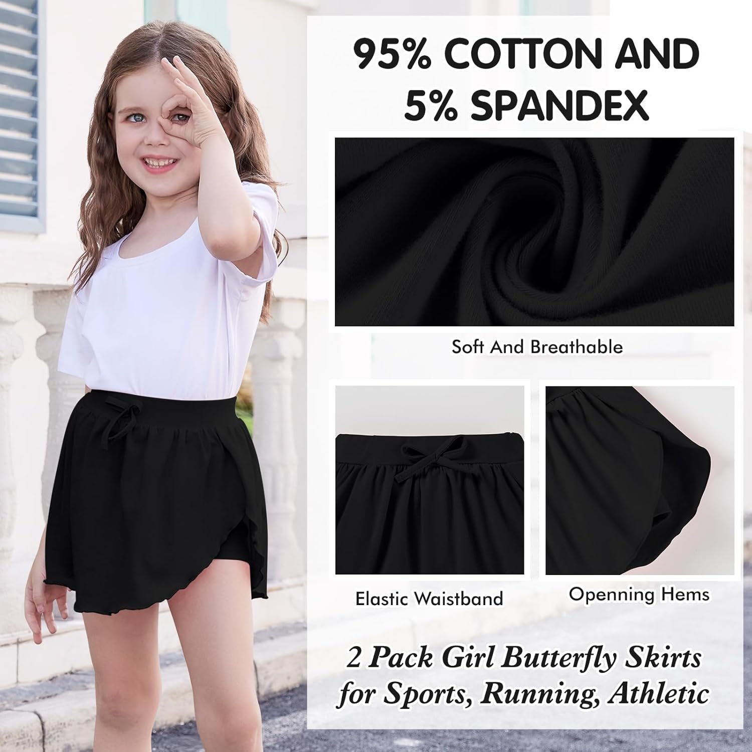 2 Pack Toddler Girls Skirts Skorts Built in Shorts Elastic Flared Baby Flowy Tennis Athletic Skirts Skorts for Girls