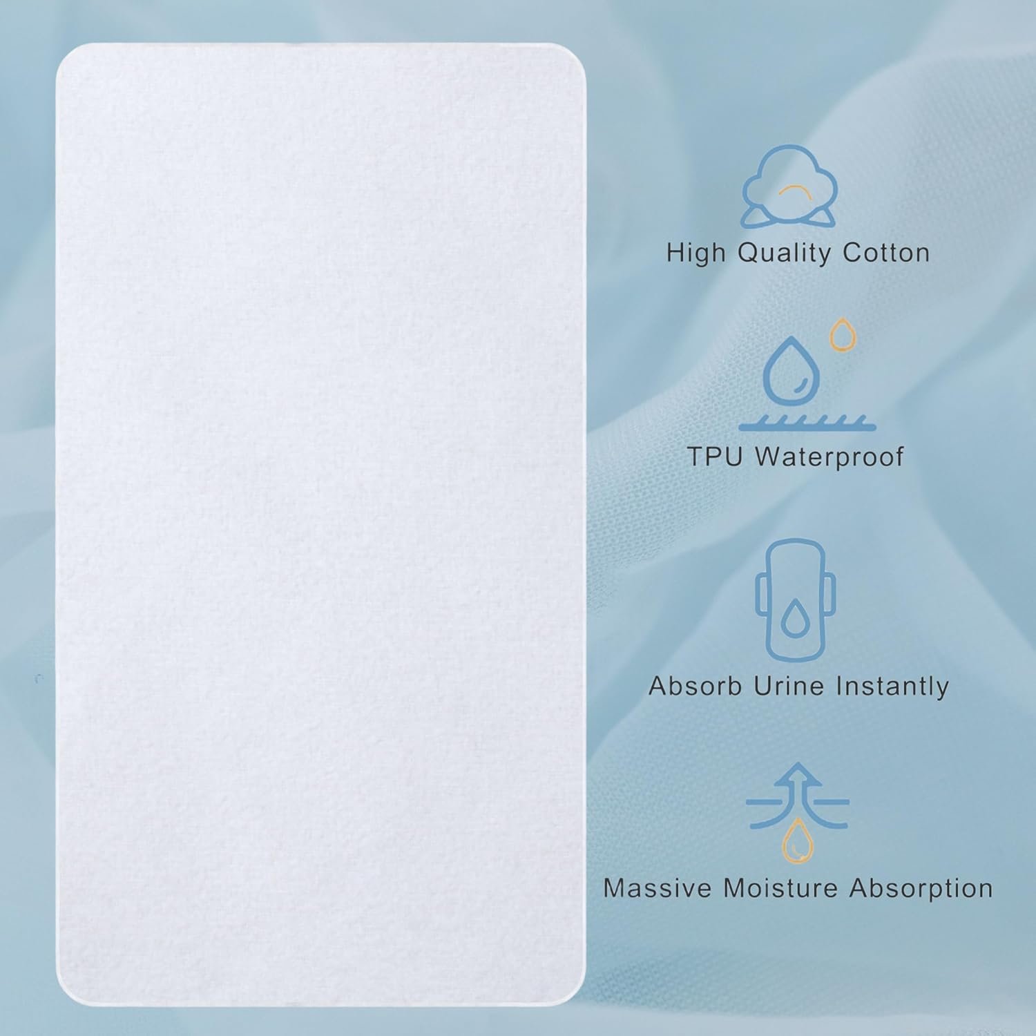 2 Pack Waterproof Crib Pad, 27″ x 50″, Reusable Incontinence Flannel Crib Protector for Baby, Toddler, Elders and Pets – White