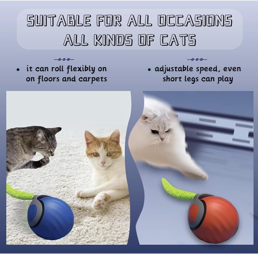 2 Packs Speediest Tail 2.0 Cat Toy,Interactive CatToy,CatToys for Indoor Cats,Chewie Viral Cat Ball,Adjustable Sports Rolling Toy,Electric Rolling Ball Christmas Birthday Gift for Pets