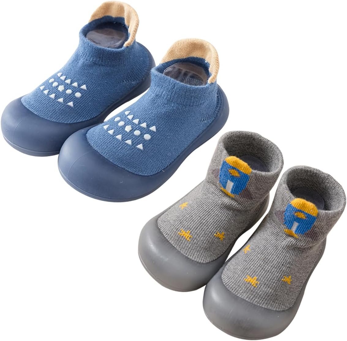 2 Pairs Baby Sock Shoes Boys Girls Non Slip Soft Rubber Sole Sneakers Toddler Infant Slip On Slippers First Walking Shoes