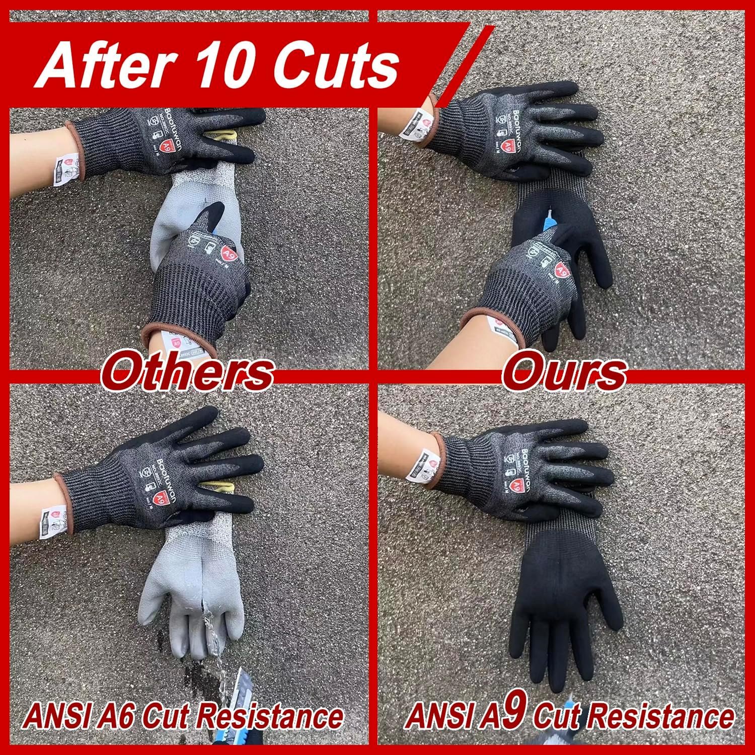 ANSI Level A9 cut resistance, engineered to withstand 6000 grams of sharp blade pressure, delivering top-tier protection for maximum safety.