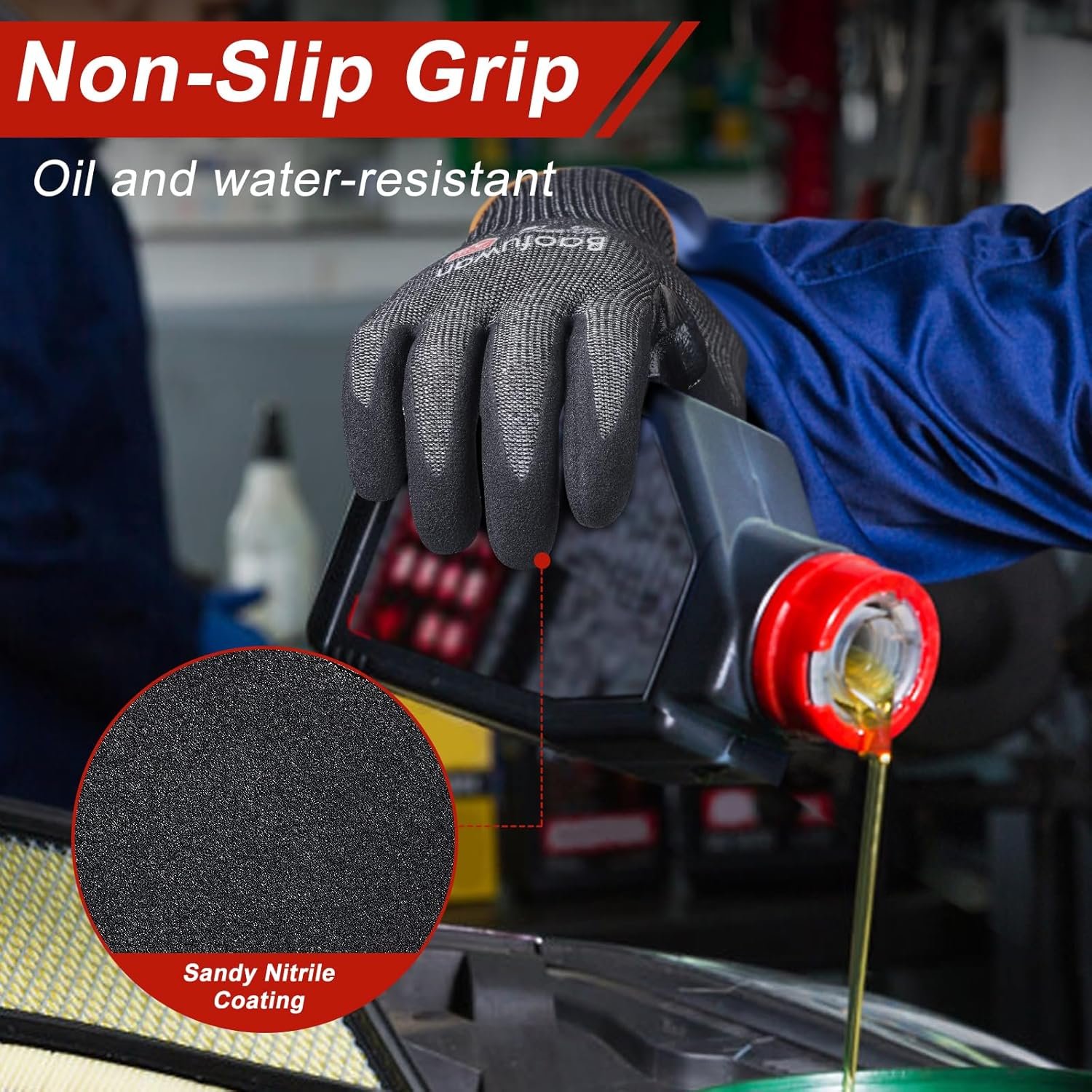 The gloves feature a sandy nitrile coating that offers exceptional anti-slip properties and a firm, reliable grip.