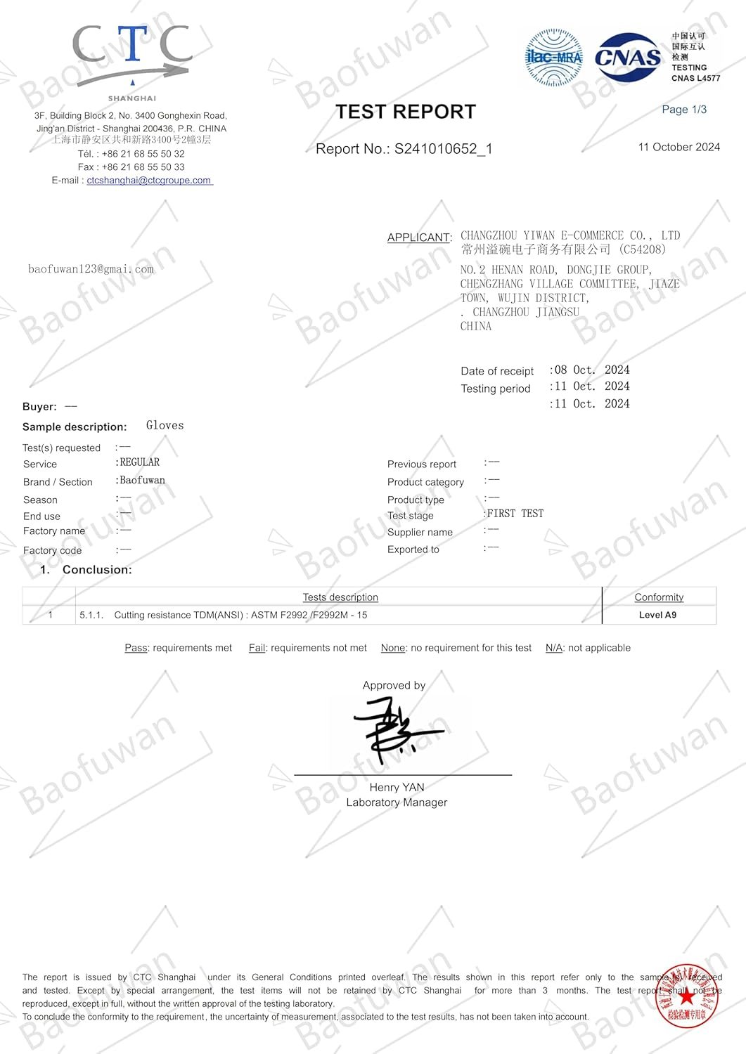 ANSI A9 Cut Resistance