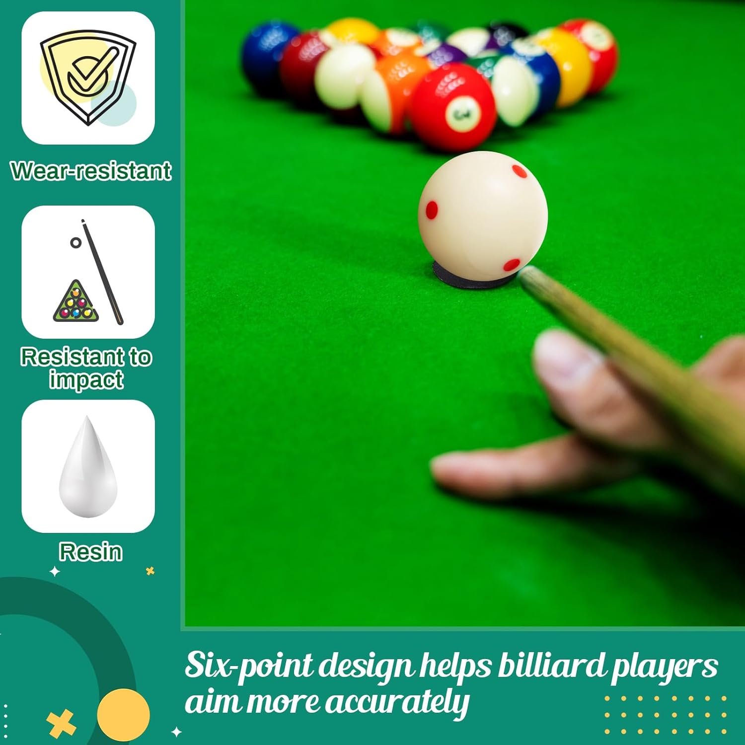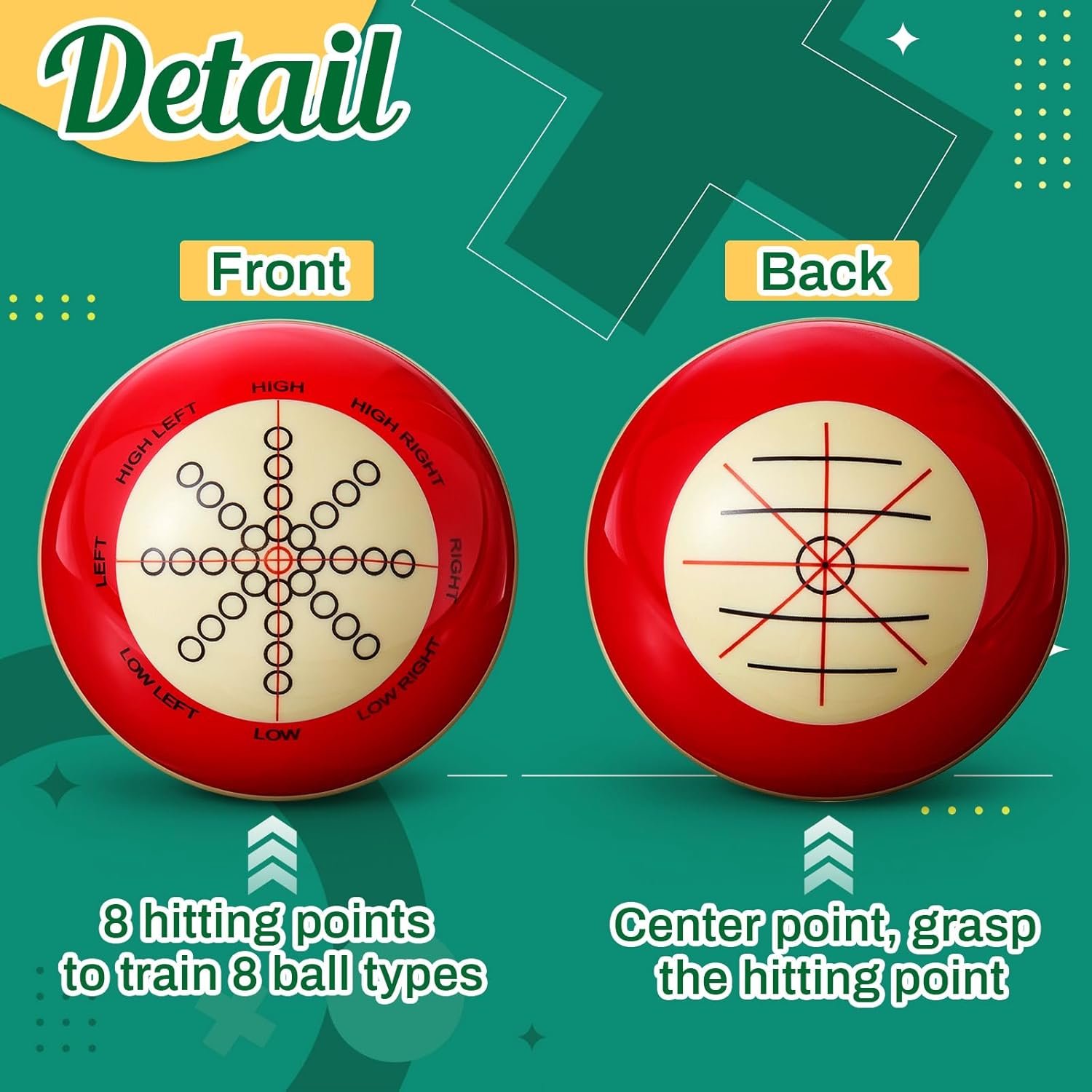 Practical Cue Ball for Practice: the double sided cue pool cue ball are marked with different points on each side; By observing the impact point, you can accurately identify the rotation point, angle, and direction; Continuous practice aids the development of shooting point awareness, improving your game; And the surface of the other cue ball is labeled with 6 red dots, with a perfect roundness, can provide excellent scratch resistance and impact resistance