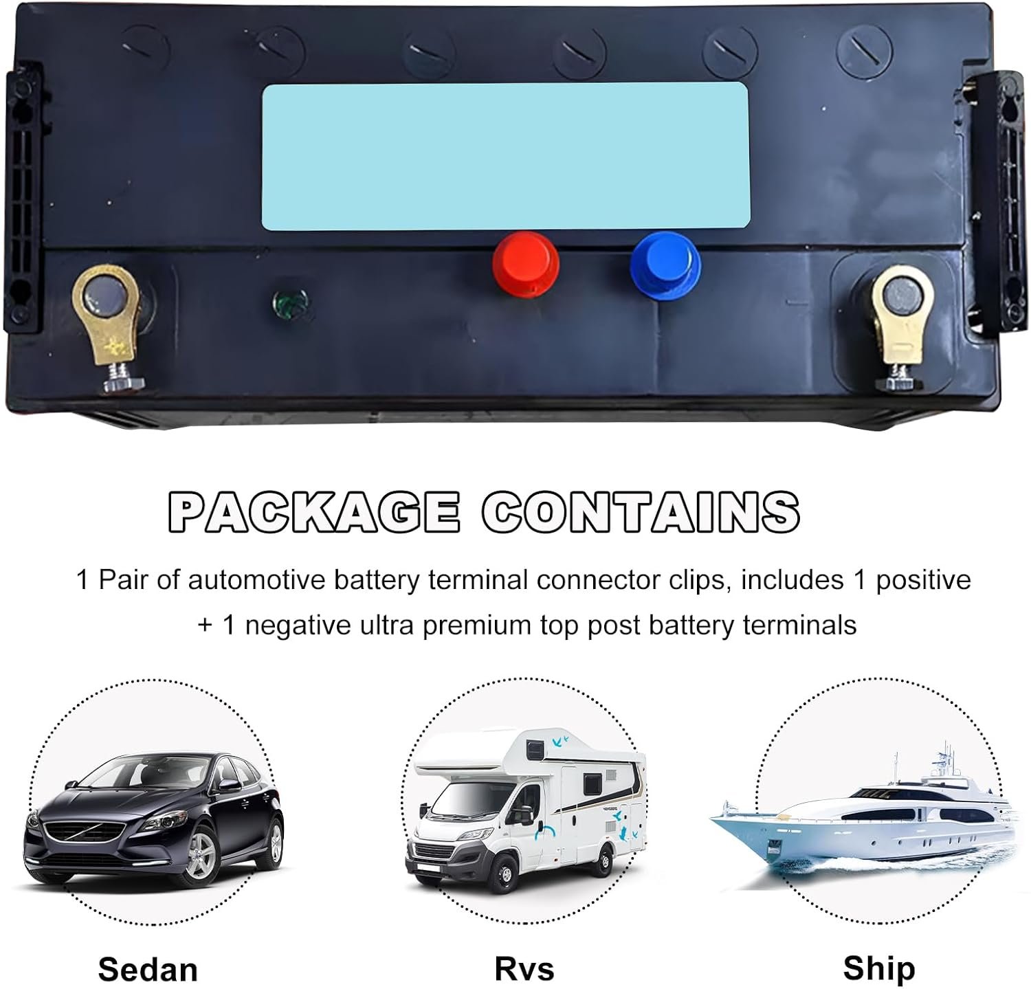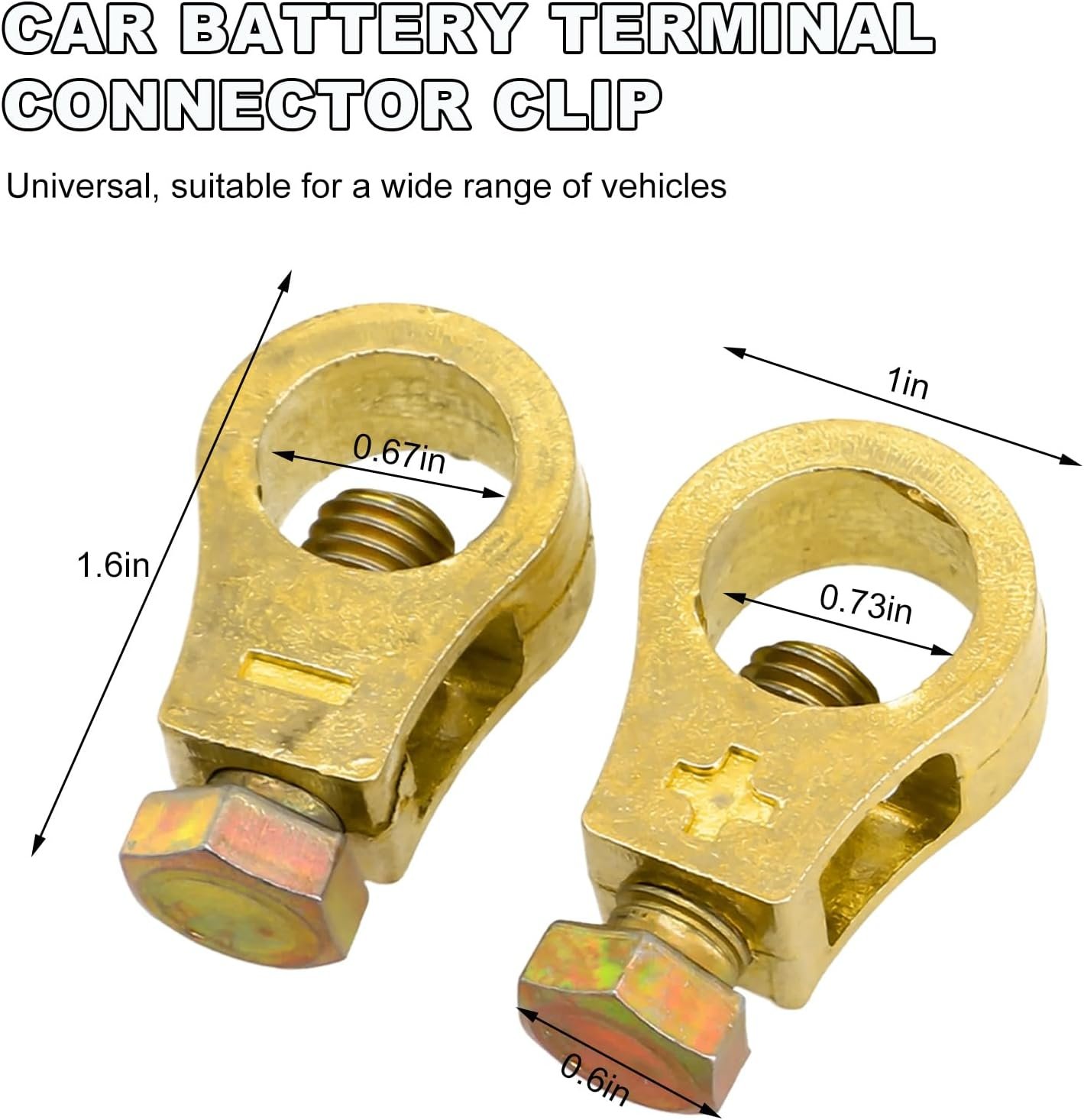 【Wide Application】: Our automotive battery terminal connector clamps have a universal design and are suitable for a wide range of vehicles with standard top post battery terminals. So whether you drive a car, SUV, truck, RV or van and so on, you can use it. You can buy with confidence.