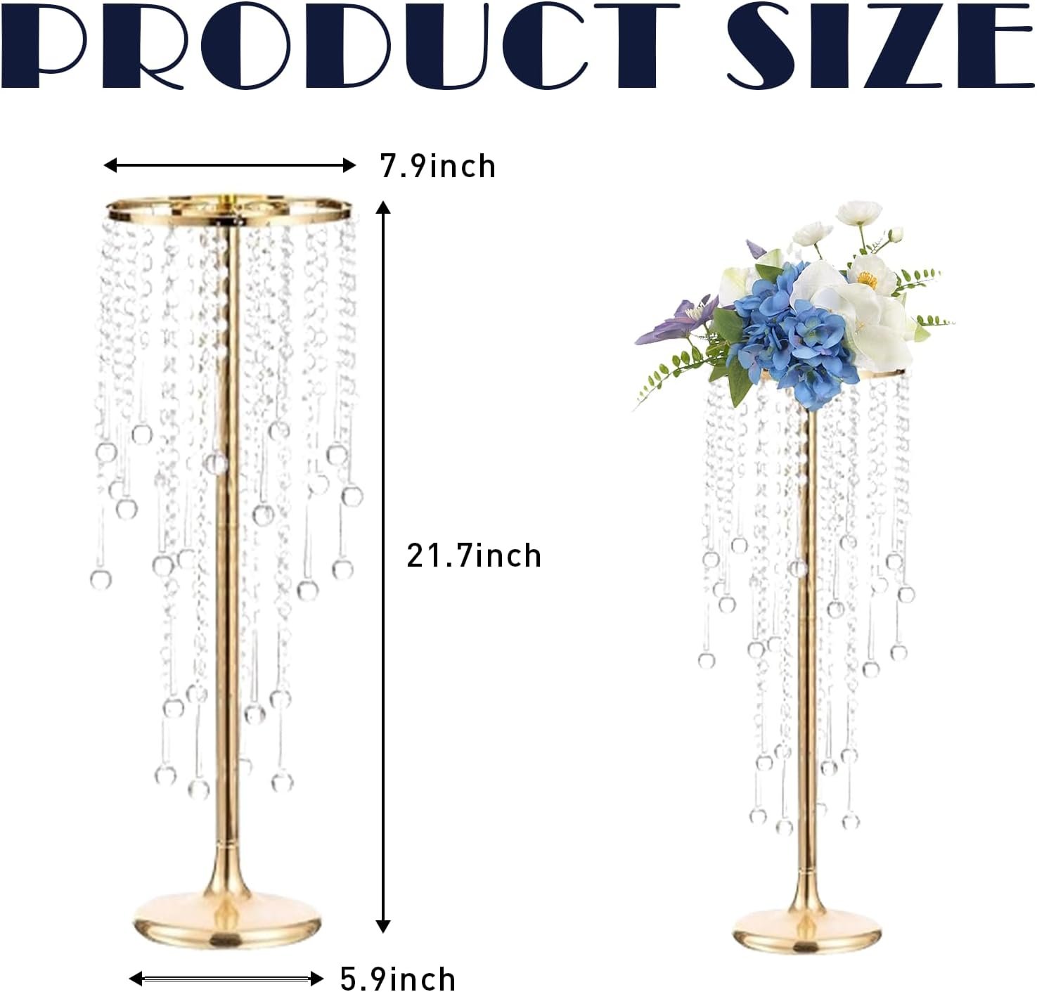 Perfect Size: Standing tall at 21.7 inches, these bead crystal flower arrangement stand command attention. The thoughtfully designed base and top diameter accommodate a variety of floral arrangements, from cascading greenery to lush flower balls.
