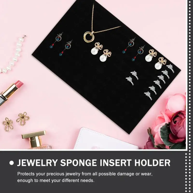 2 Pcs Jewelry Sponge Pad Convenient for Storage Ear Stud Insert Liner Cushion Protective Earring Box Foams Holder Tray Black