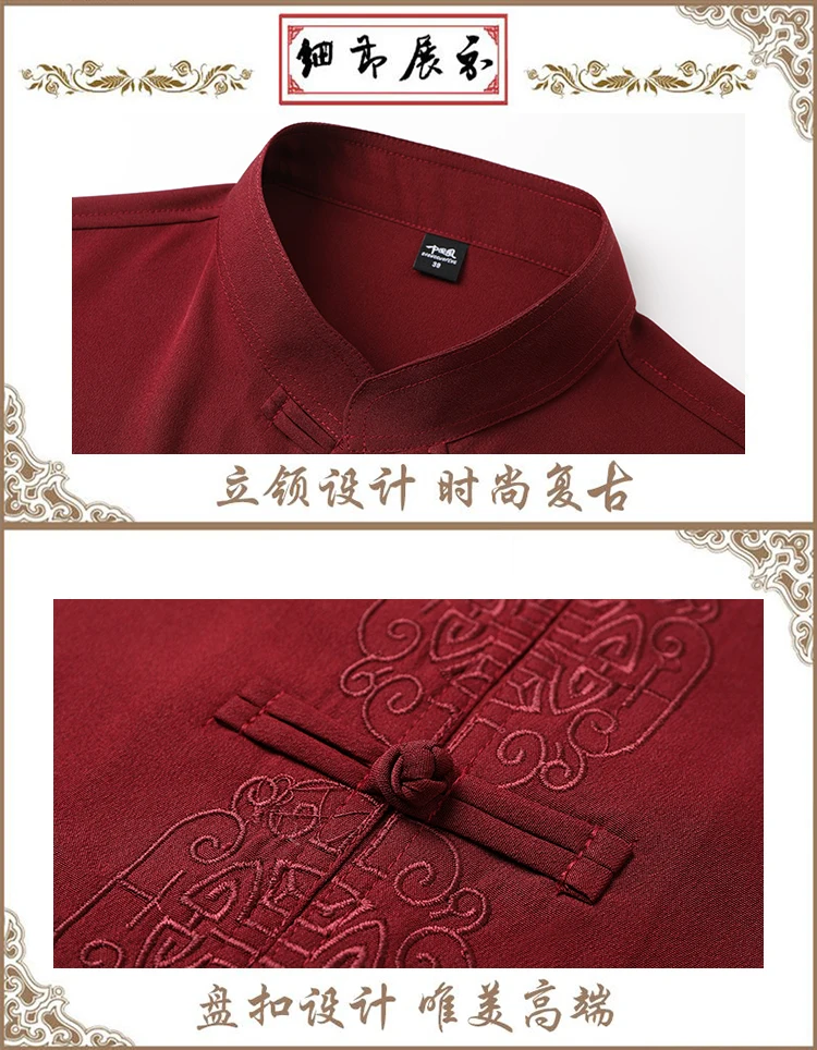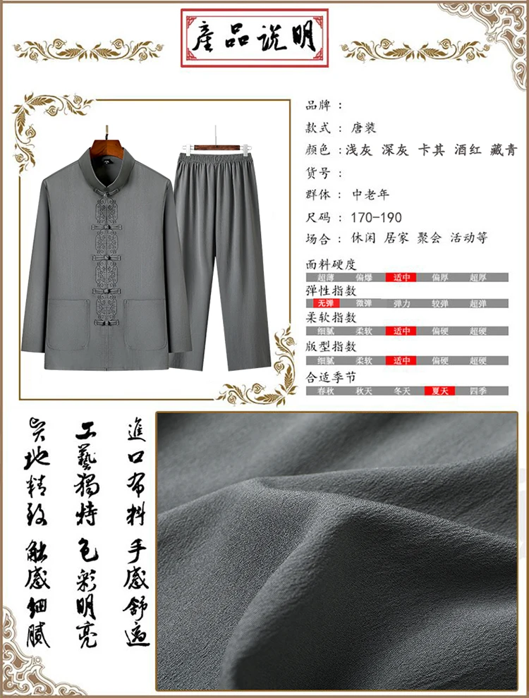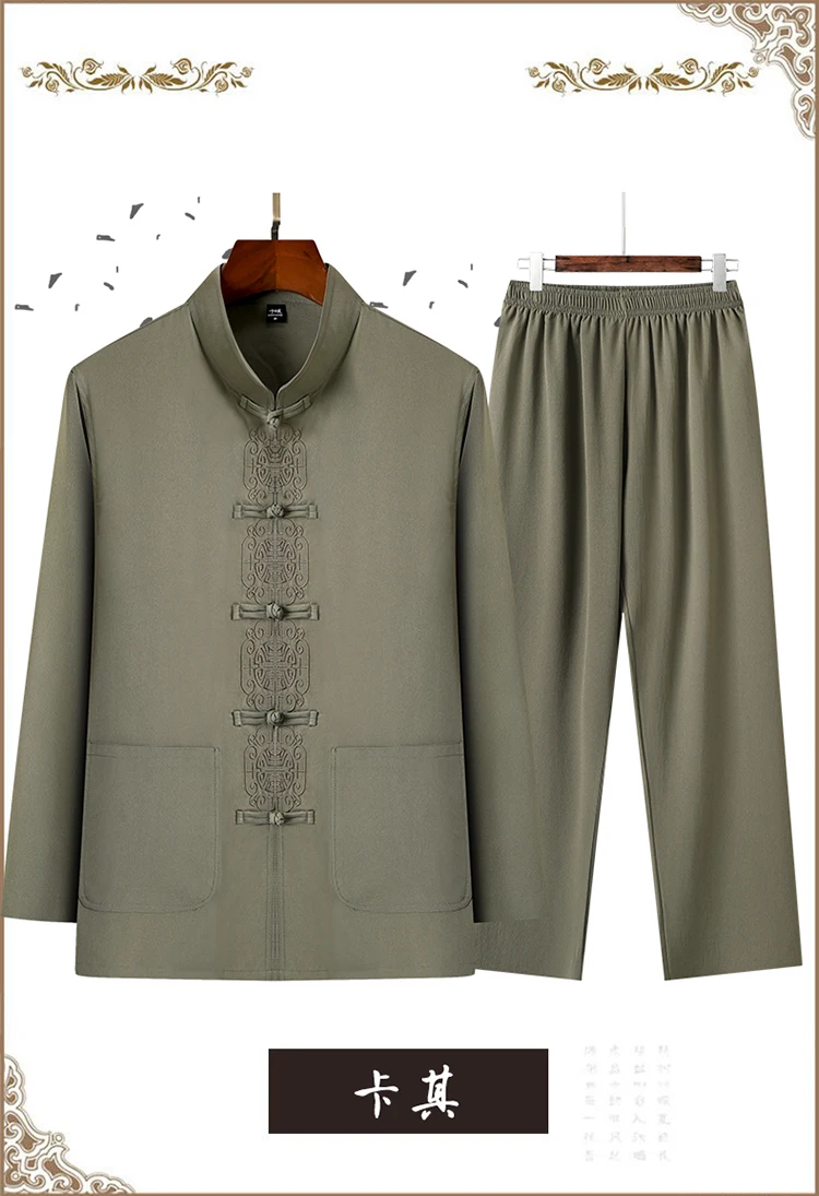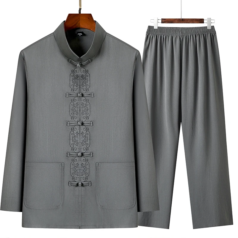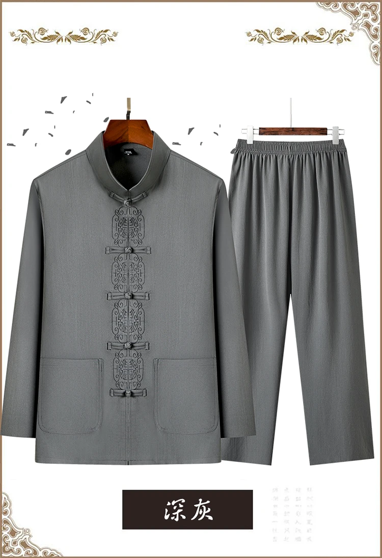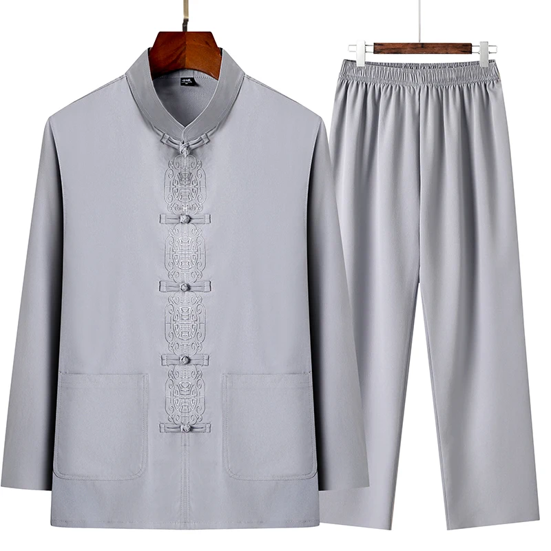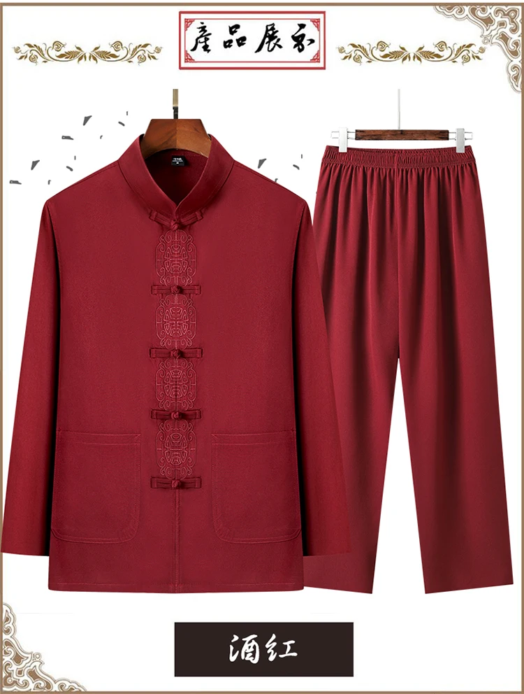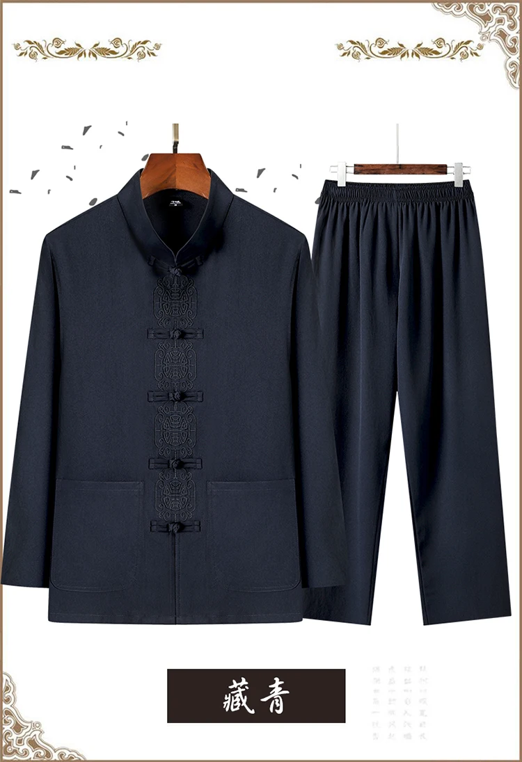 3 reviews for 2 Pcs/Set Men Tang Suit Set Chinese Traditional Clothes Hanfu Elastic Waist Wide Leg Soft Mid-aged Men Shirt Trousers Sets