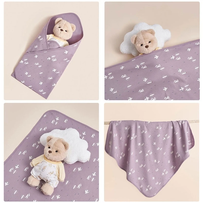 2 PCs Soft Pure Cotton Baby Receiving Blanket Printed Newborn Swaddle Blanket Wrap Kids Security Cuddle Blanket Bedding