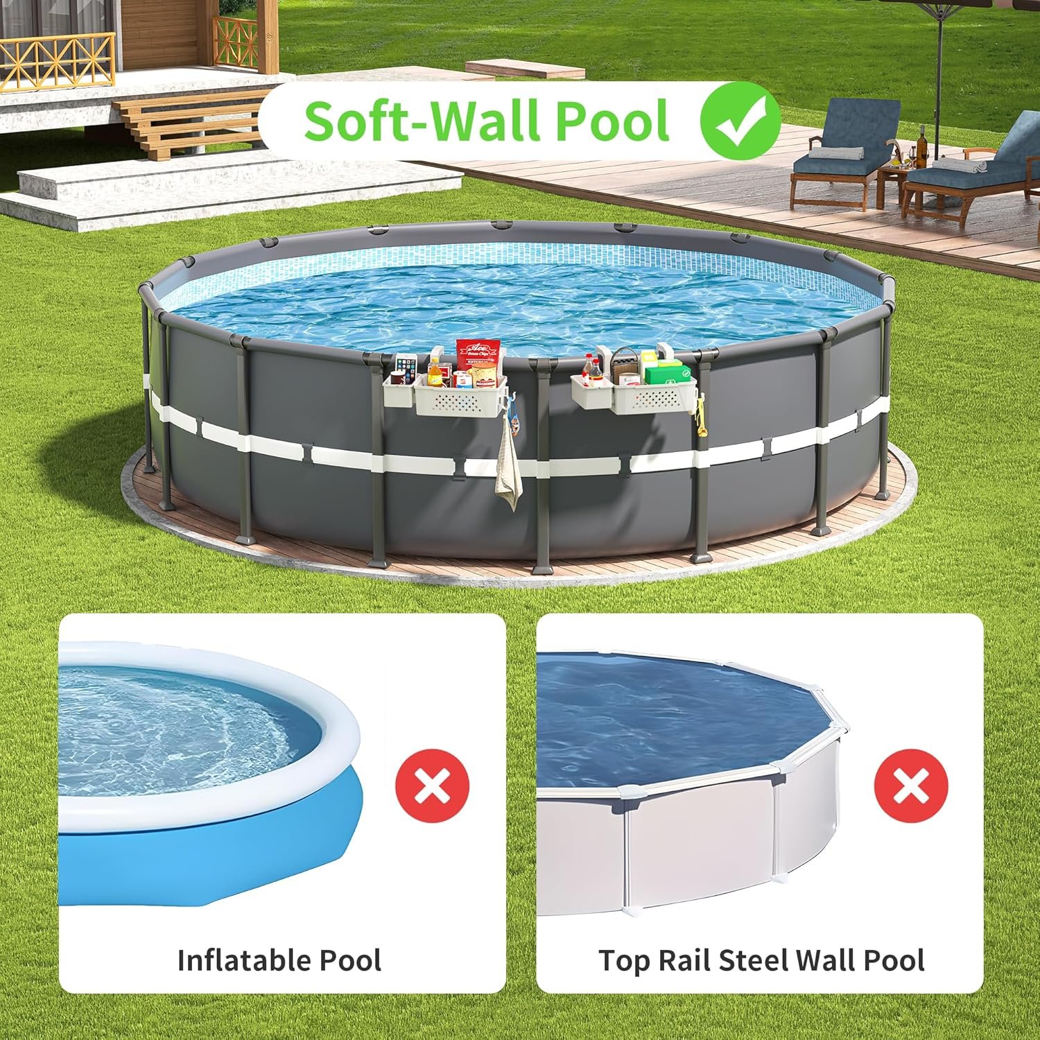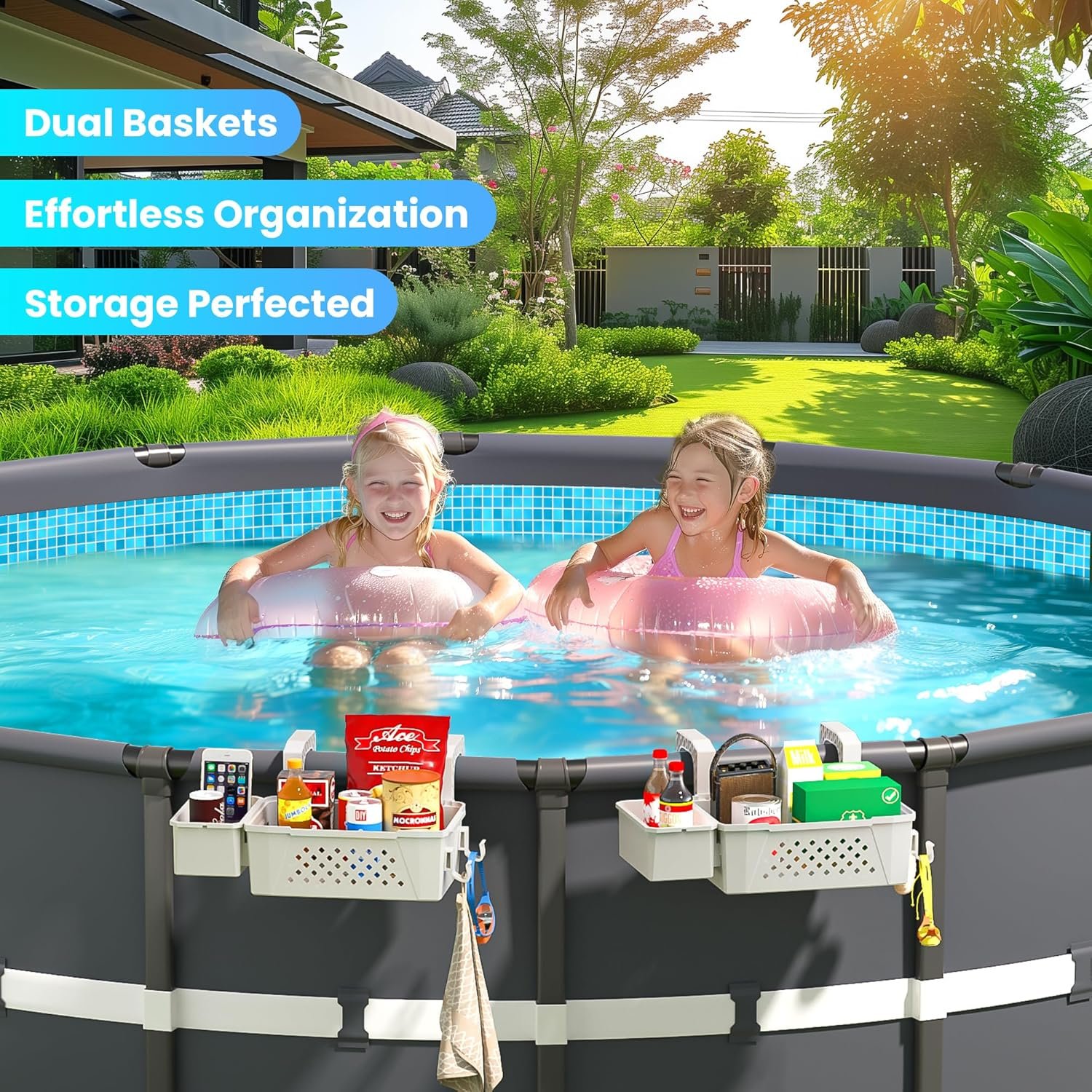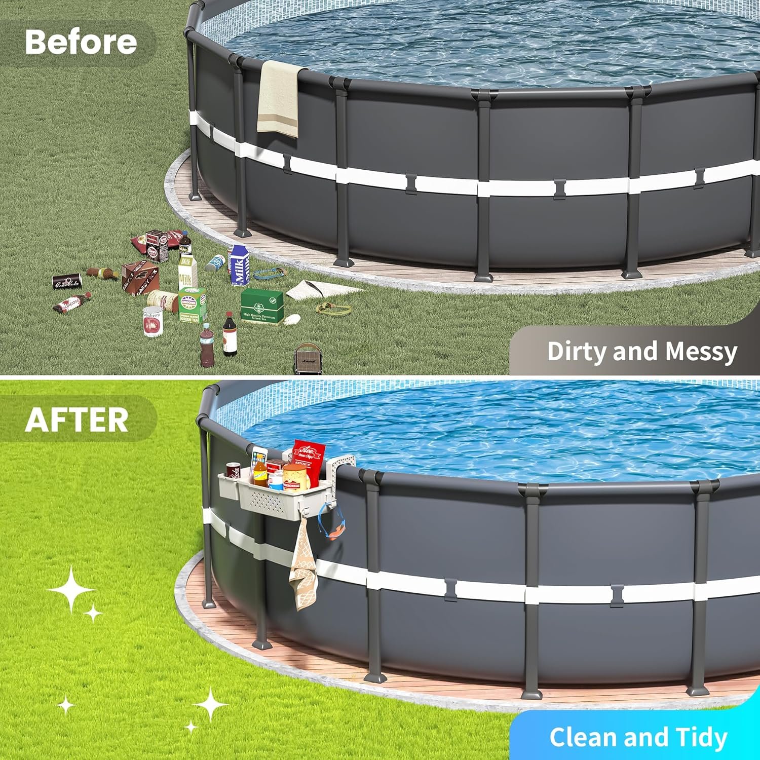Generous Capacity: This 3-in-1 upgraded storage solution can hold all your essentials. Hang towel or goggles on the small hooks, while the cup holders keep your drinks within reach. It’s ideal for storing kids’ swim gear, toys, books, sunglasses, and even a Bluetooth speaker. Dive into your above ground pool fun!
