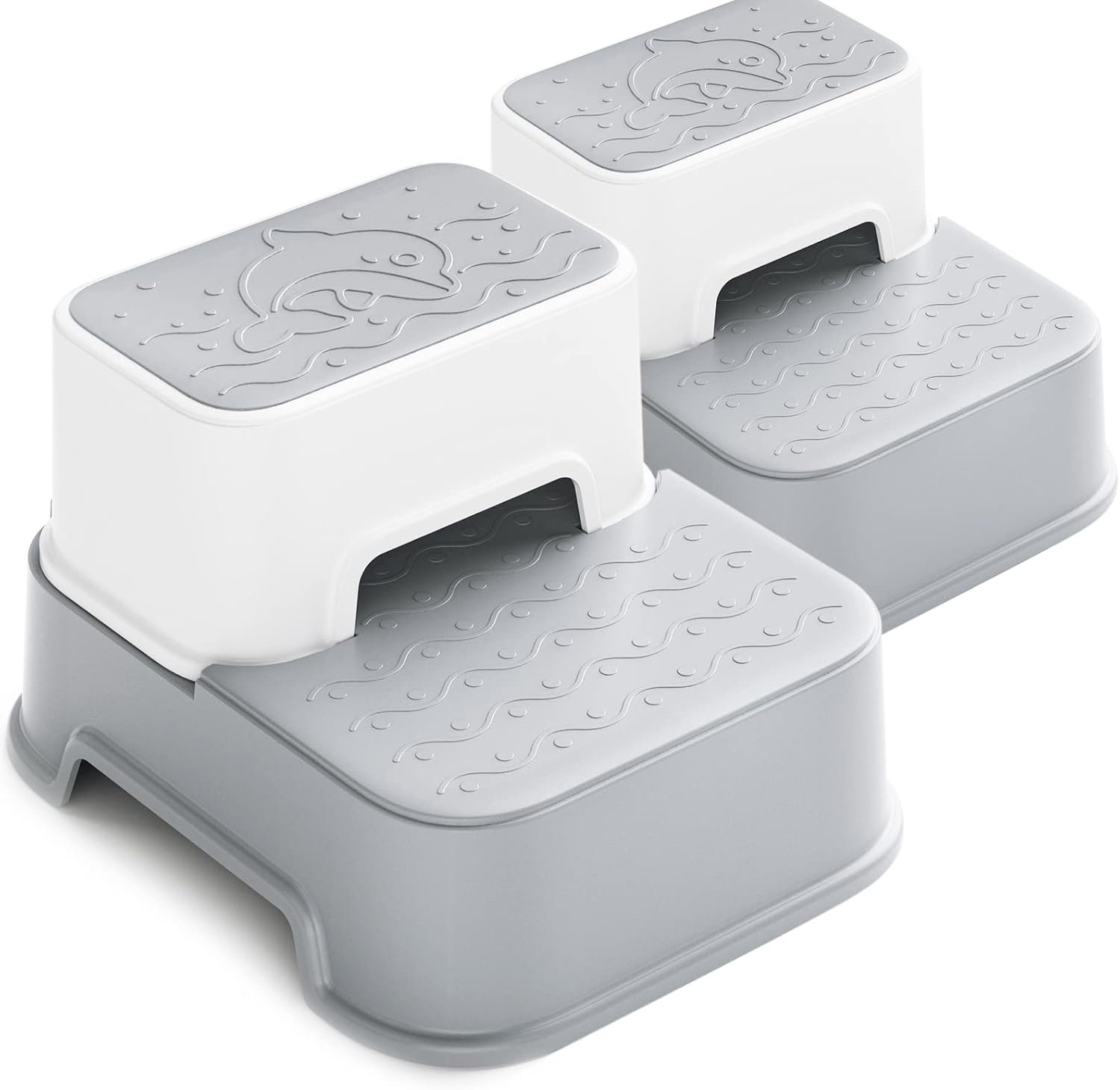 2 Step Stool for Kids (2 Packs),Toddler Stool for Bathroom Sink,Potty Training,Toilet Stool, Slip Resistant(Grey)