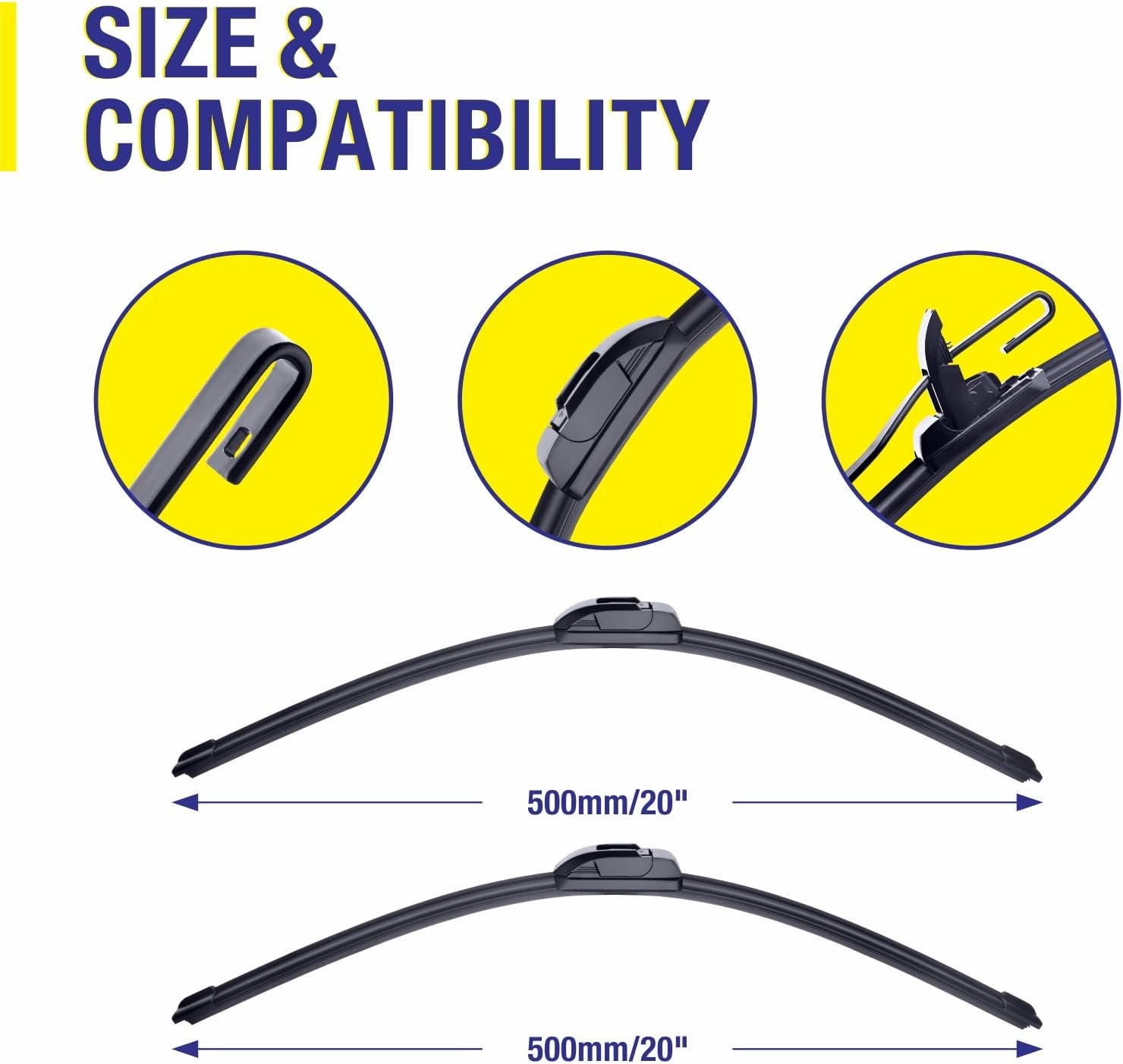 20″-2 Pack Windshield Wiper Blades Replacement For Ford F150 F250 F350 F450 F550 2008-1999 Expedition 2006-1999 Explorer 2010-2005 Mustang 2004-1999 /Chevy Blazer S10 2004-1999 +More