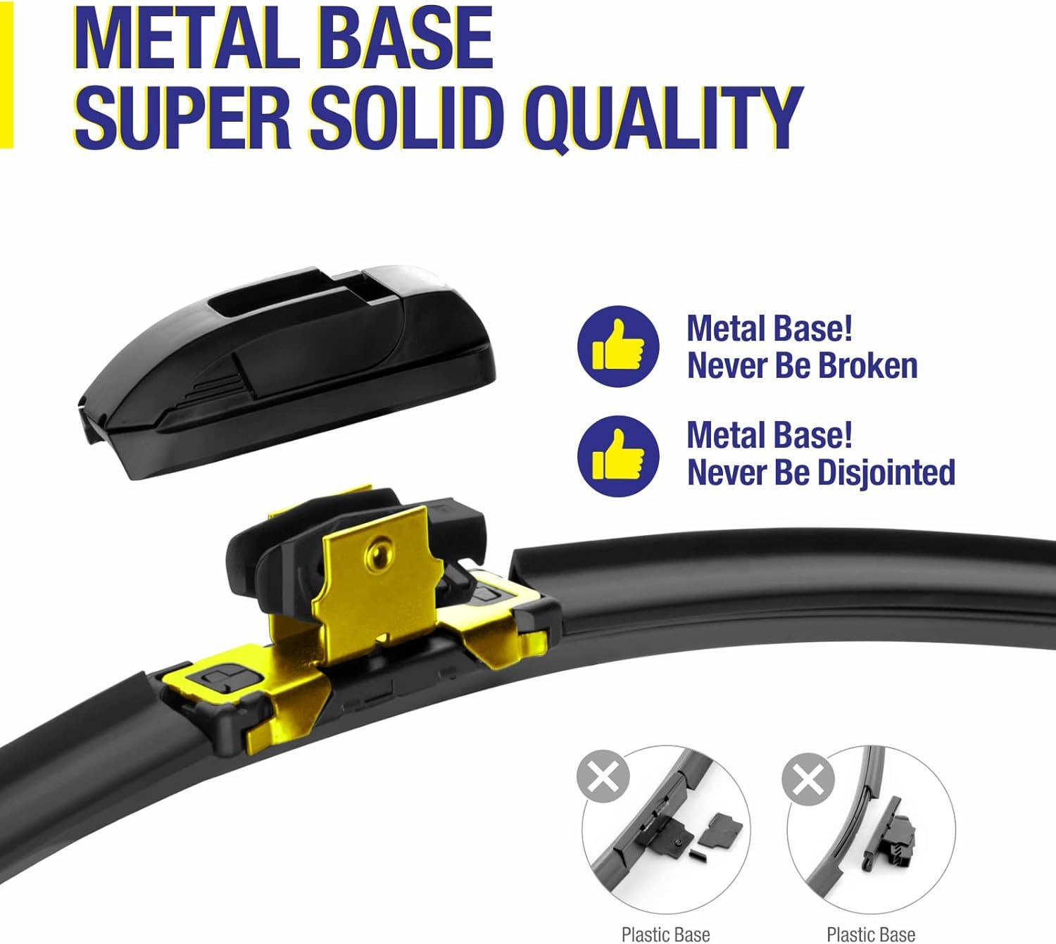 【Metal base】 The metal base is stronger than the plastic base, and the high quality material is suitable for all kinds of extreme weather to make the wiper last longer.