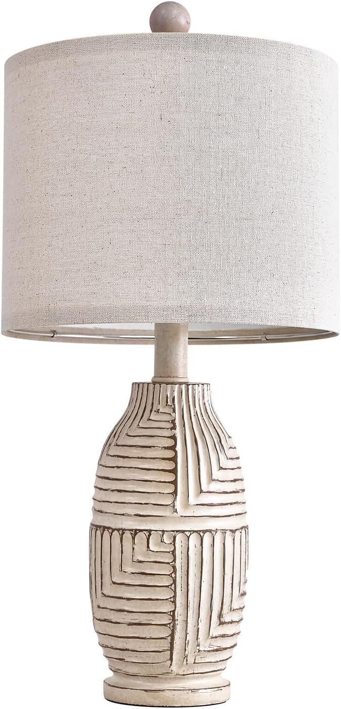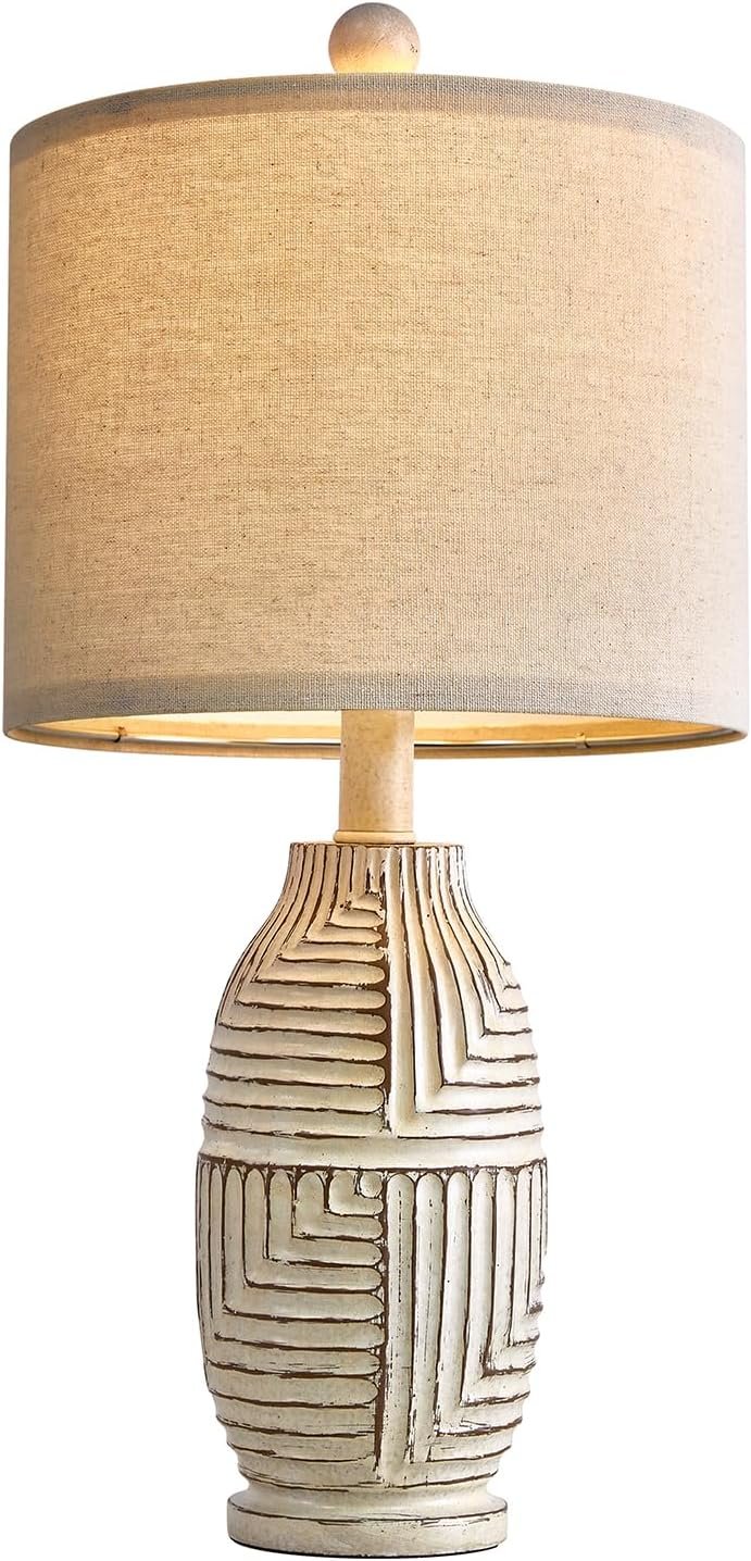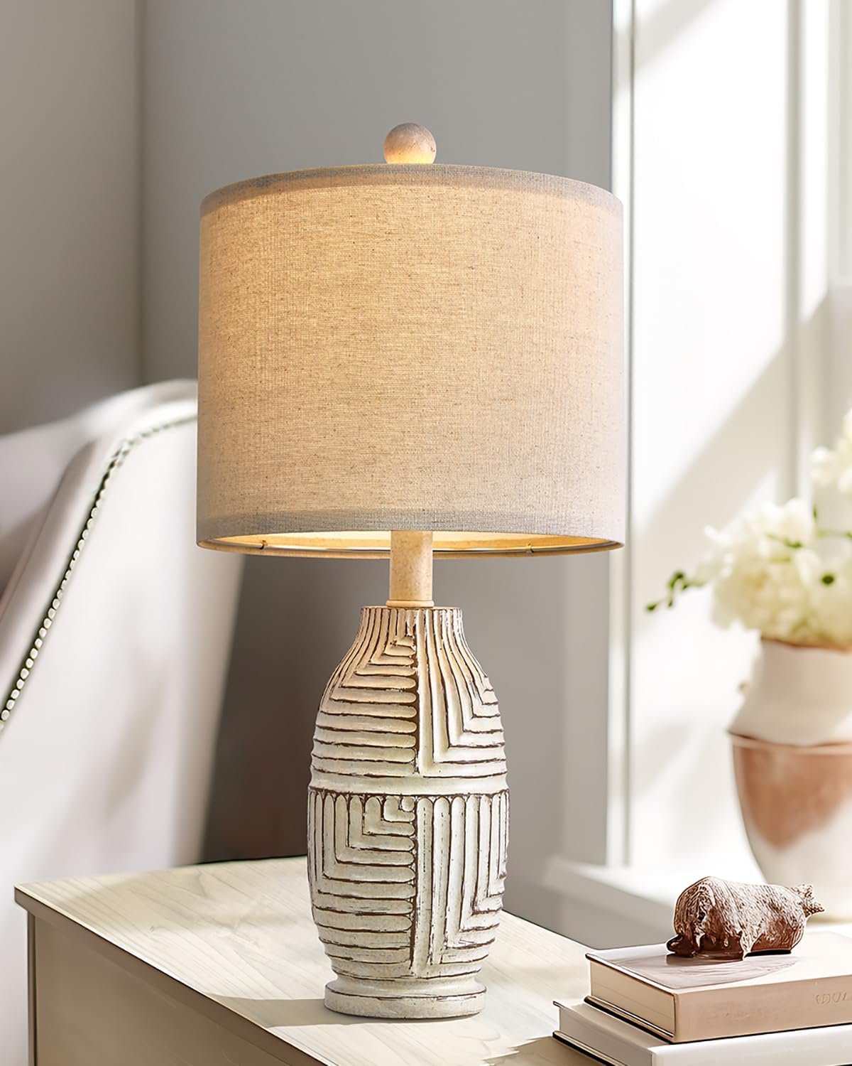 20.25″ Farmhouse Single Resin Lamp for Bedroom Living Room Retro Rustic Vintage Small Boho Lamps Bedside Nightstand Light Home Office Desk Deco (White)
