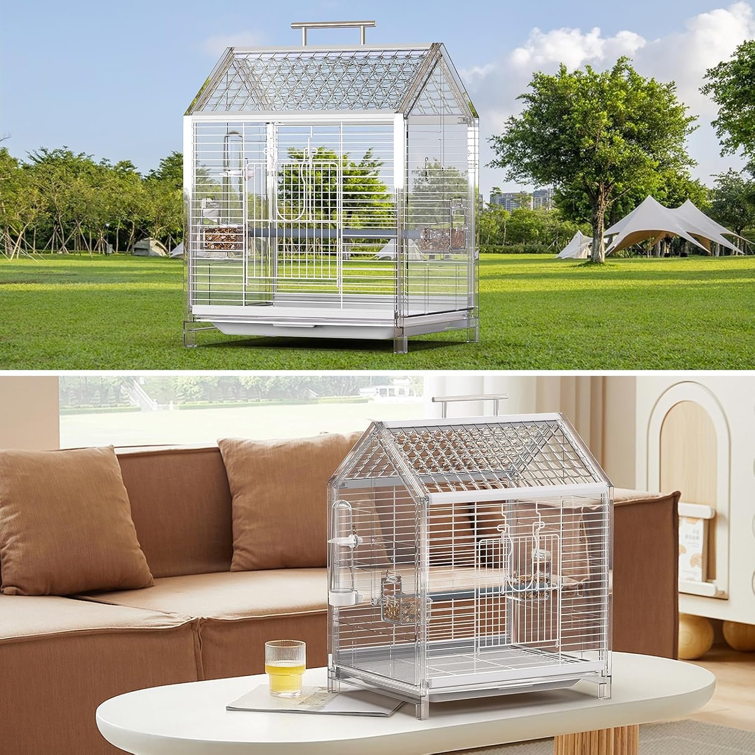 【Easy to Carry】Our parrot cage features a handle on top for convenient mobility.