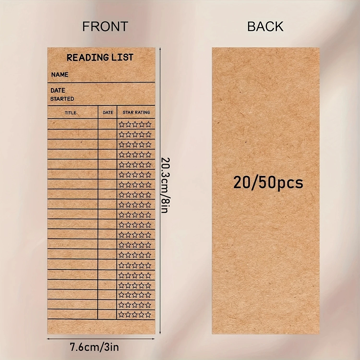 20/50 PCS Reading List Bookmark, 3 x 8 Inch Personal Library Cards, Reading Log Bookmark, Perfect Gift for Reading Lovers