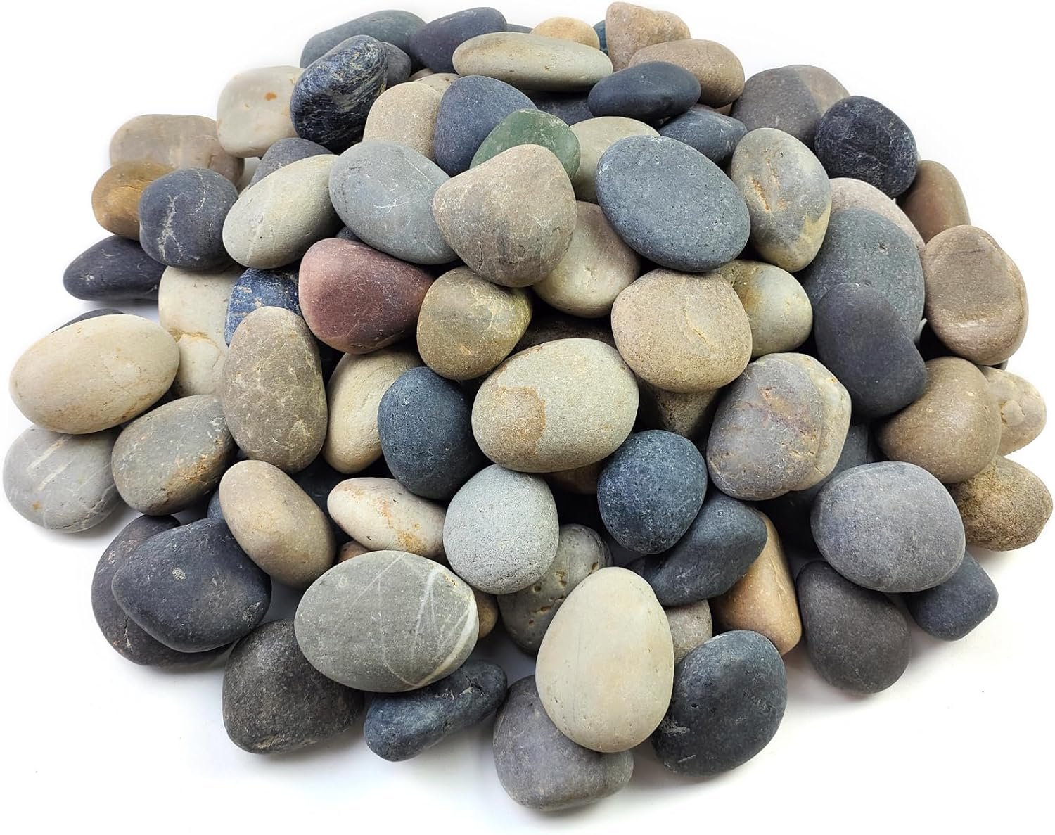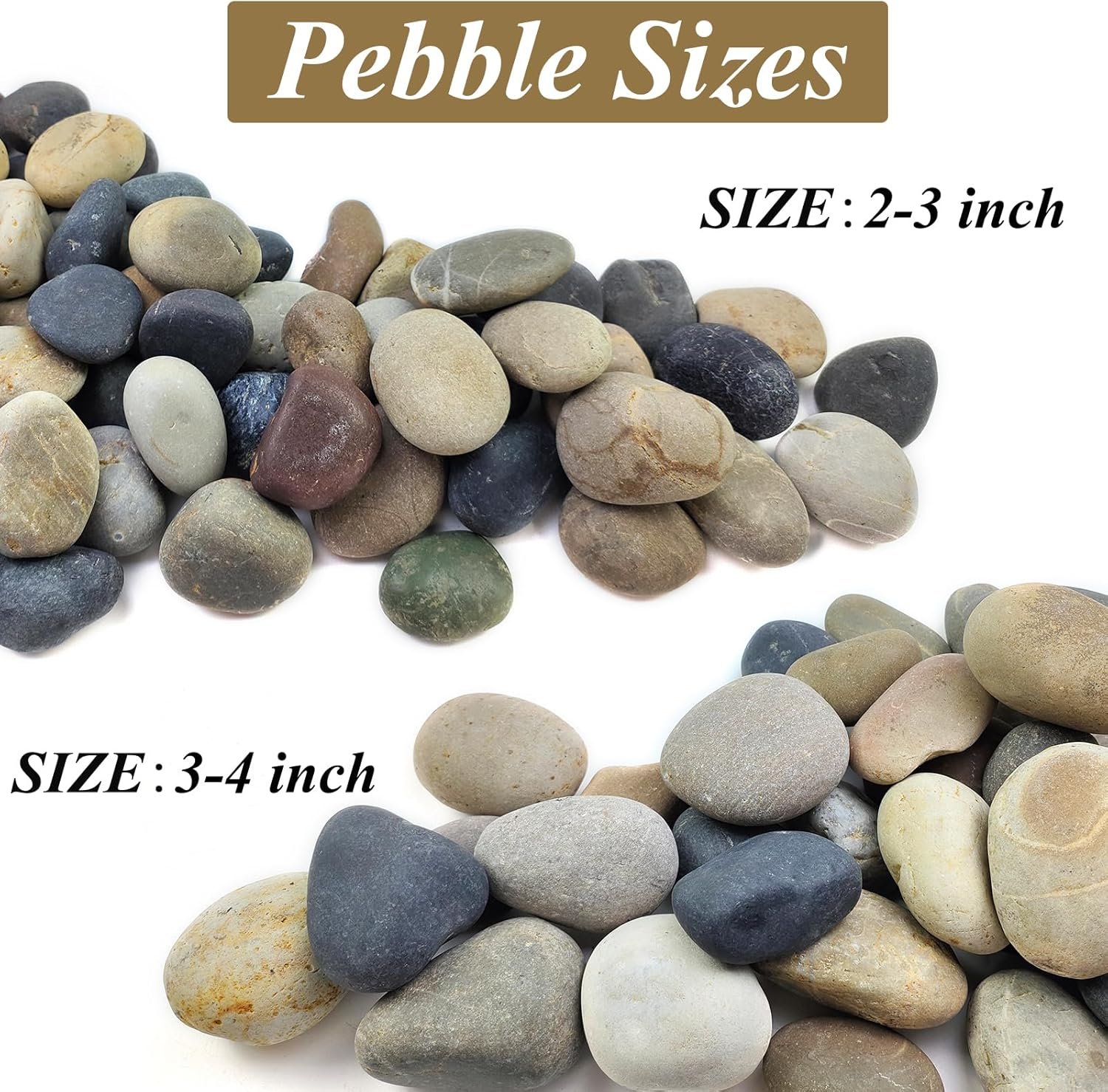 【Weight & Size】Weight: 20 pounds. Size: 2-3 inches. Mixed color river rocks are clean and smooth,and contains a variety of different colors, shades and shapes. Keep in mind that rocks are really heavy, smaller than expected in volume and quantity.