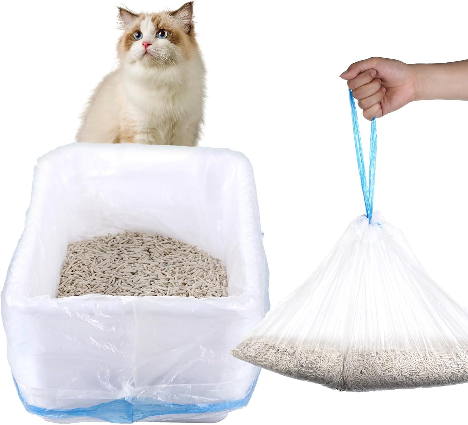 【Drawstring closure design】Each cat litter bag liner is equipped with a convenient drawstring closure. The cat liner for litter box can easily seal odors and prevent cat litter from overflowing. Just pull it gently to close it tightly, effectively locking in odors, and you can clean it quickly at any time.
