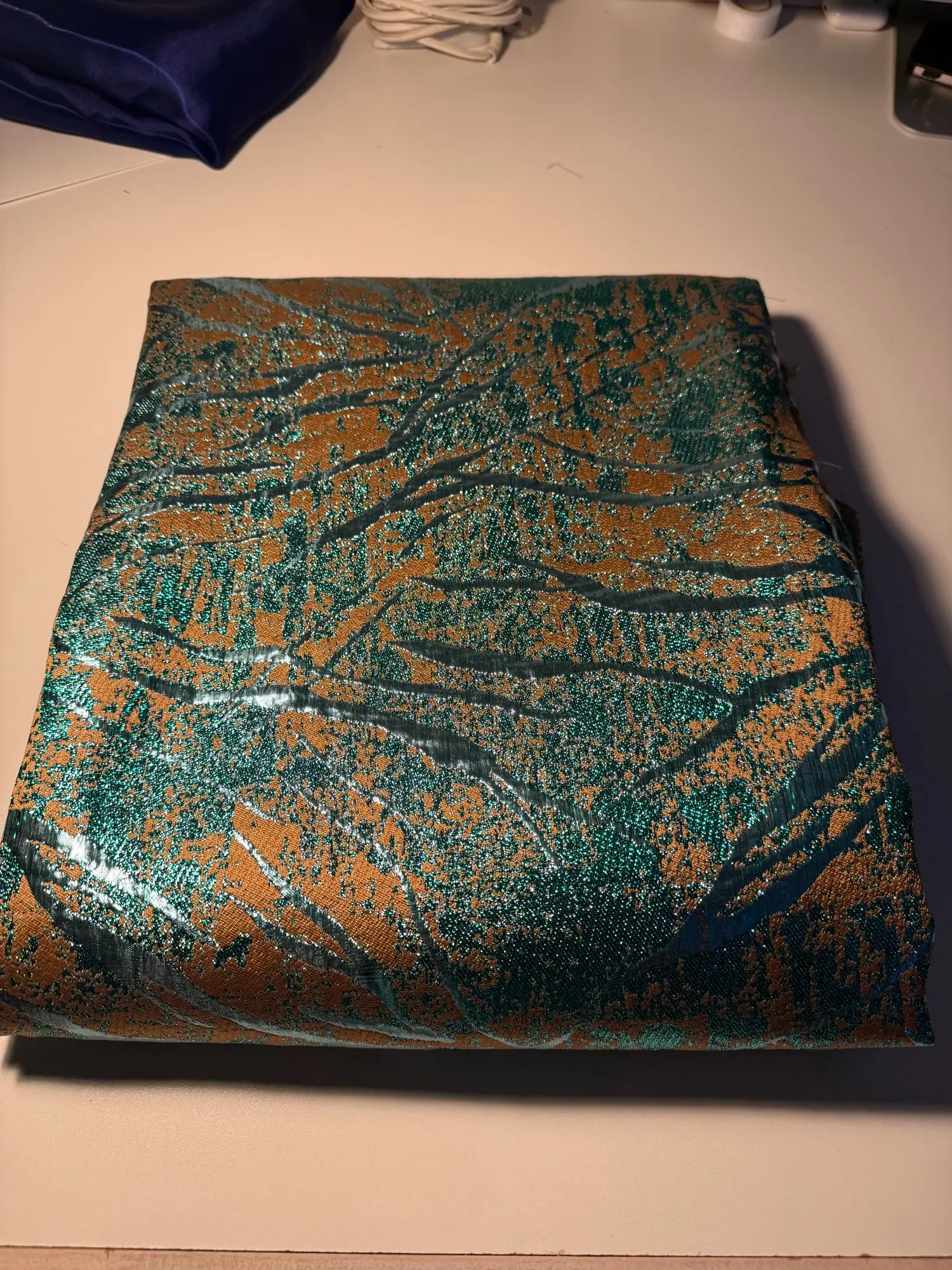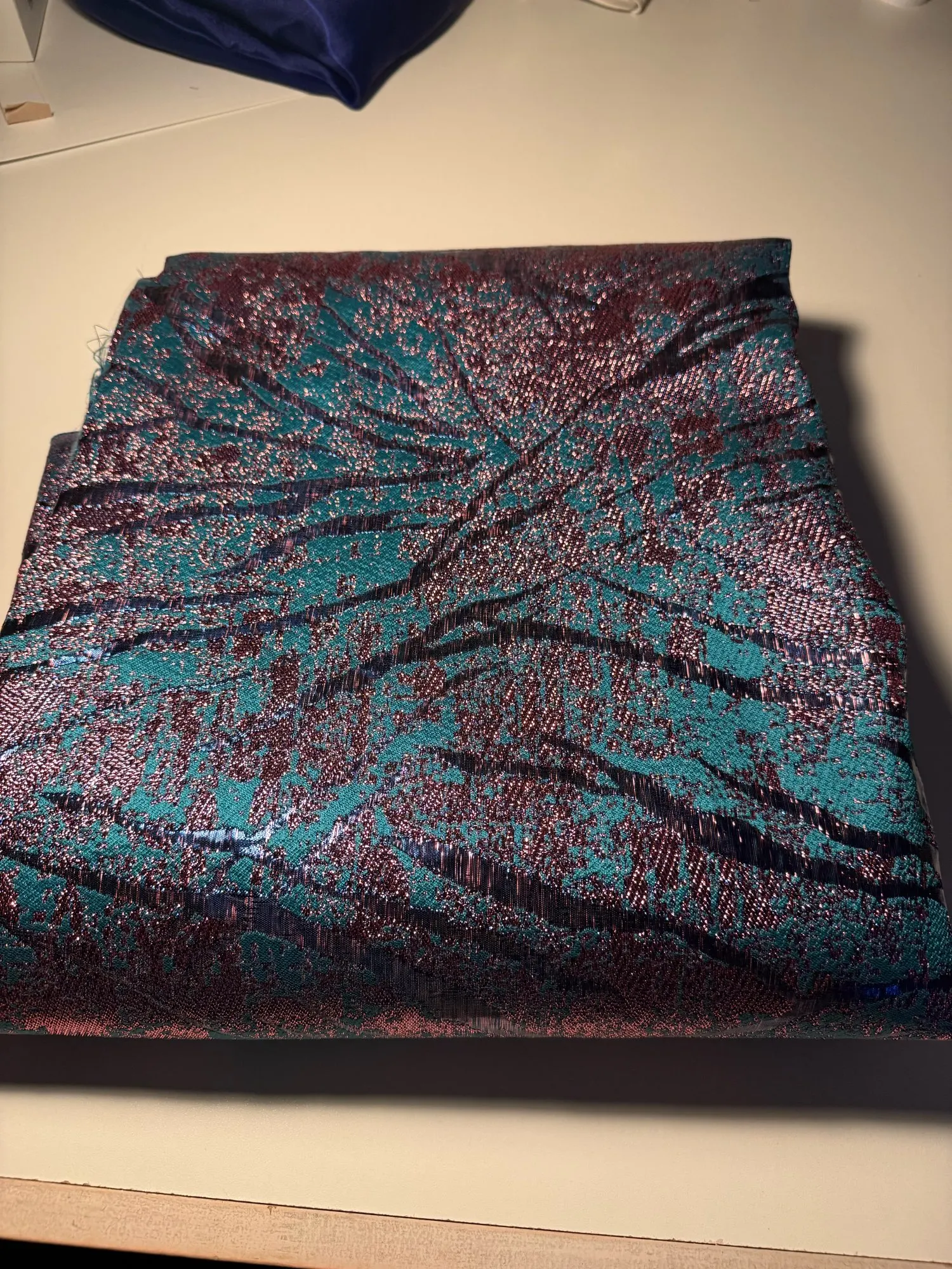 It is truly a beautiful fabric. Very bright colour and shiny. The delivery was as expected. It came at the right time stated for delivery. Everything went well with this particular order.
