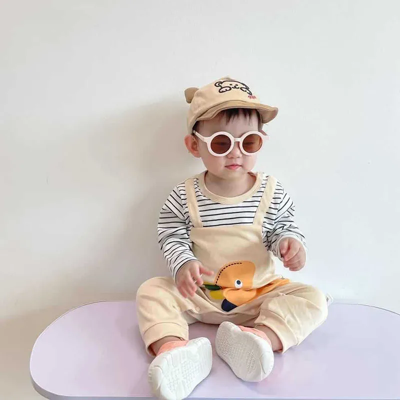 1 review for 2024 Autumn Baby Clothes Newborn Jumpsuit Infant Boys False 2 Pcs Stripe Patchwork Romper Toddler Cartoon Dinosaur One Piece