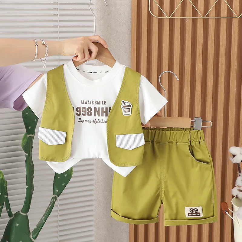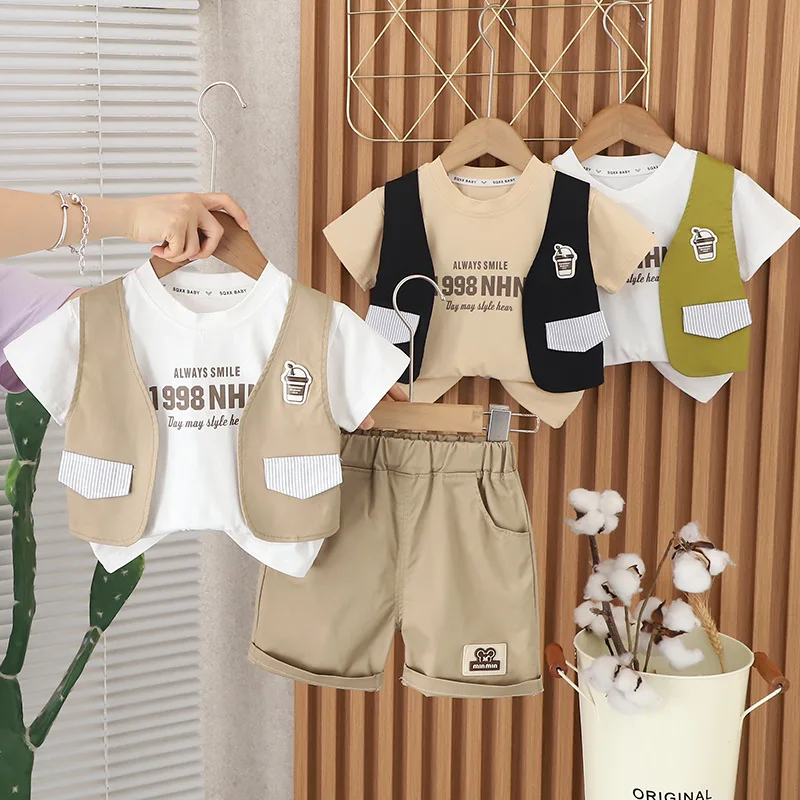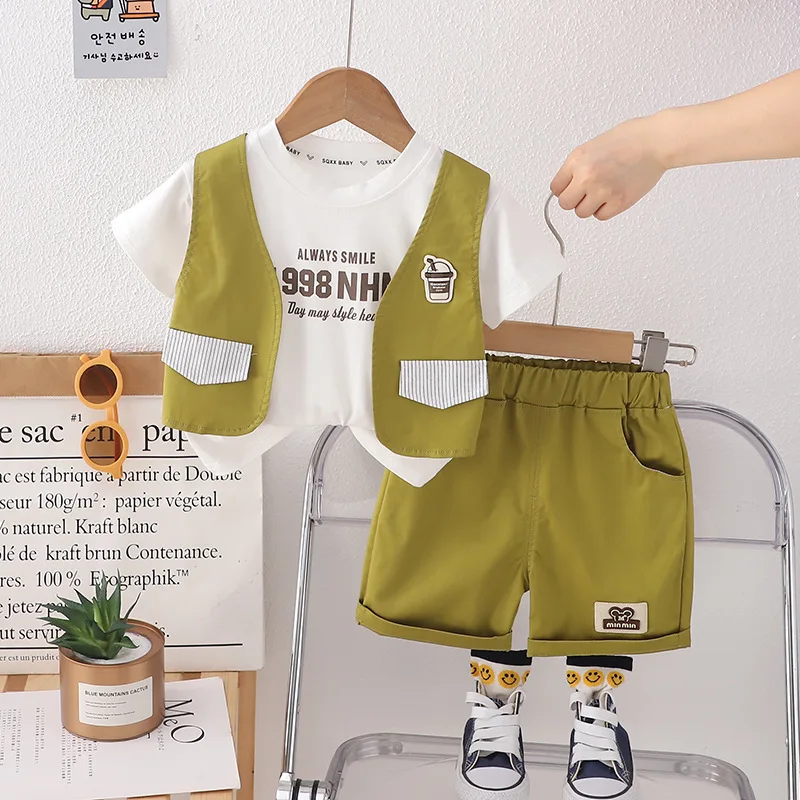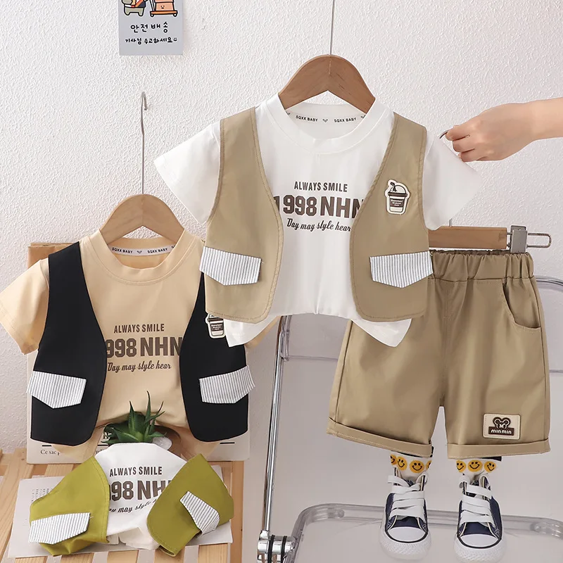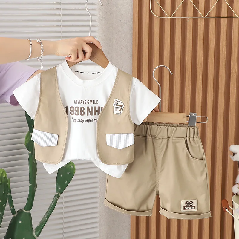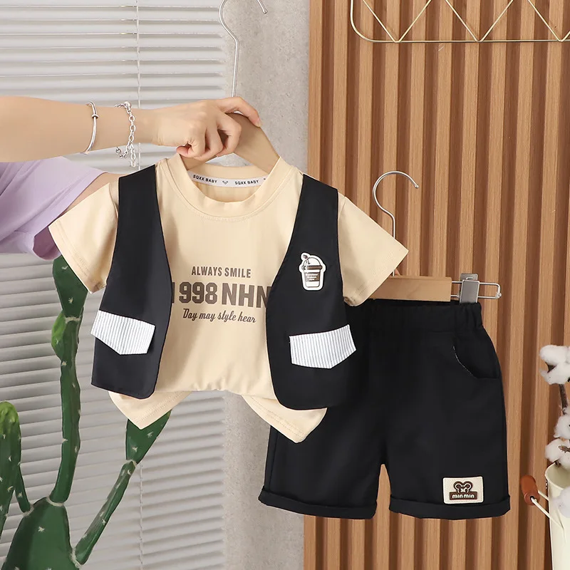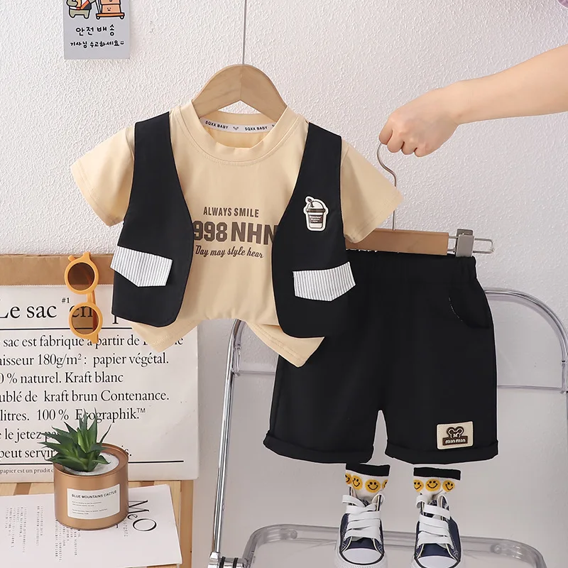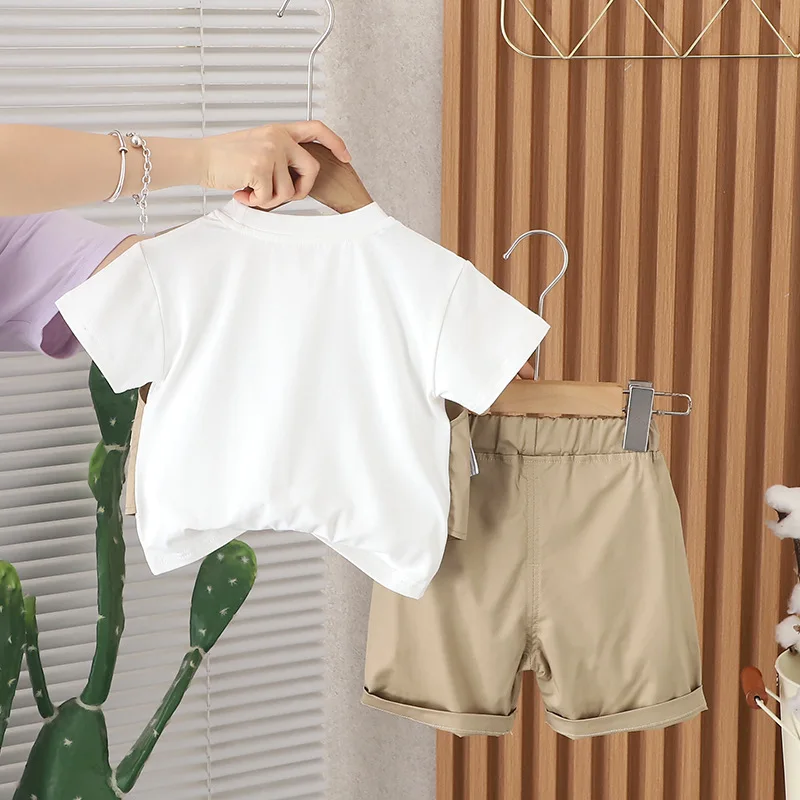 1 review for 2024 Designer Baby Boy 18 Months Old Summer Clothes for Kids Letter Pullover Short Sleeve T-shirts and Shorts Boys Outfits Set