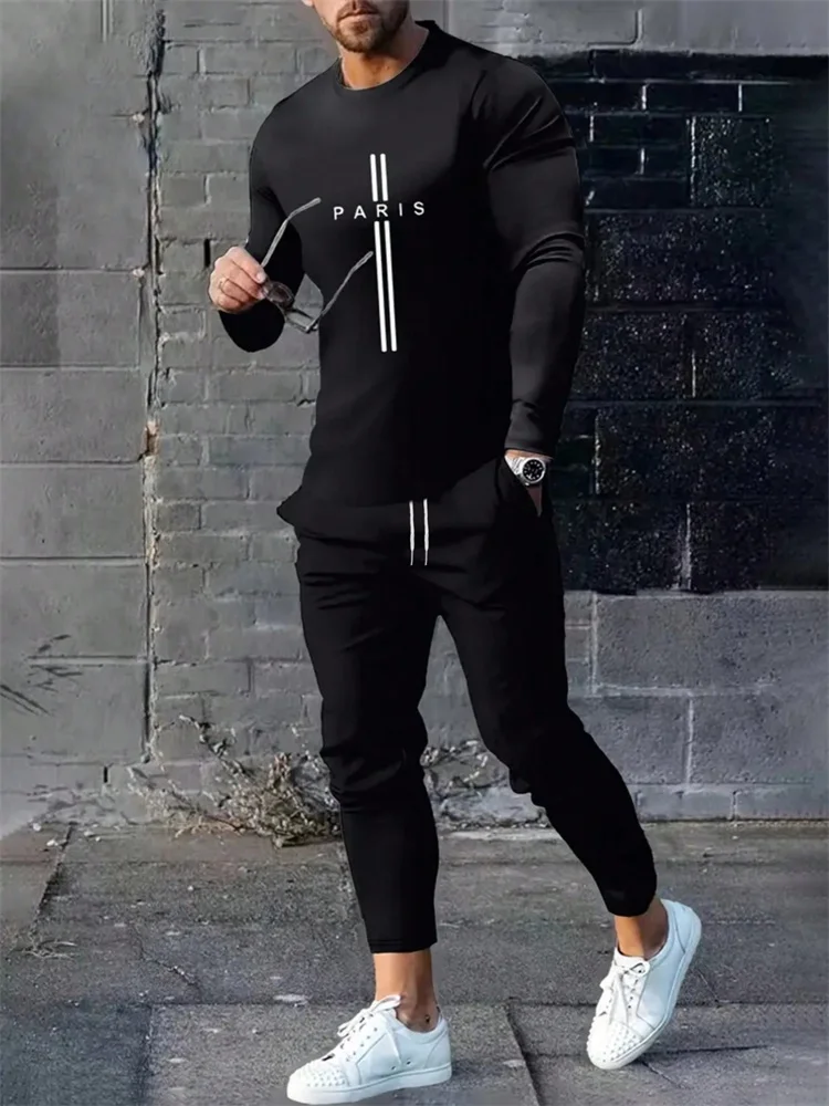 2024 Harajuku Street Fashion Trend Men’s Fall Long Sleeve 2pcs Set Daily Sports Casual Men’s Top And Casual Pants With Pockets
