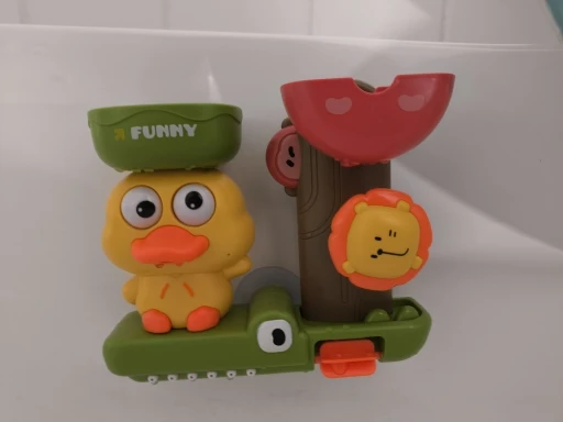 So cute! Works very well and toddler loves playing with it in the bath. The duck’s googly eyes are funny. The box was pretty crumpled on arrival but item intact.