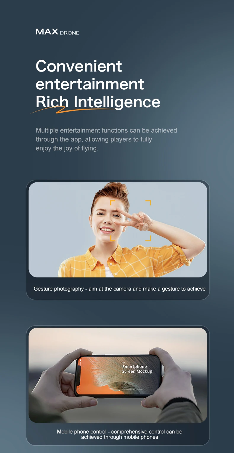 6. Gesture photography, optical flow positioning, brushless motor, long battery life, dazzling lights, make the night more bright.