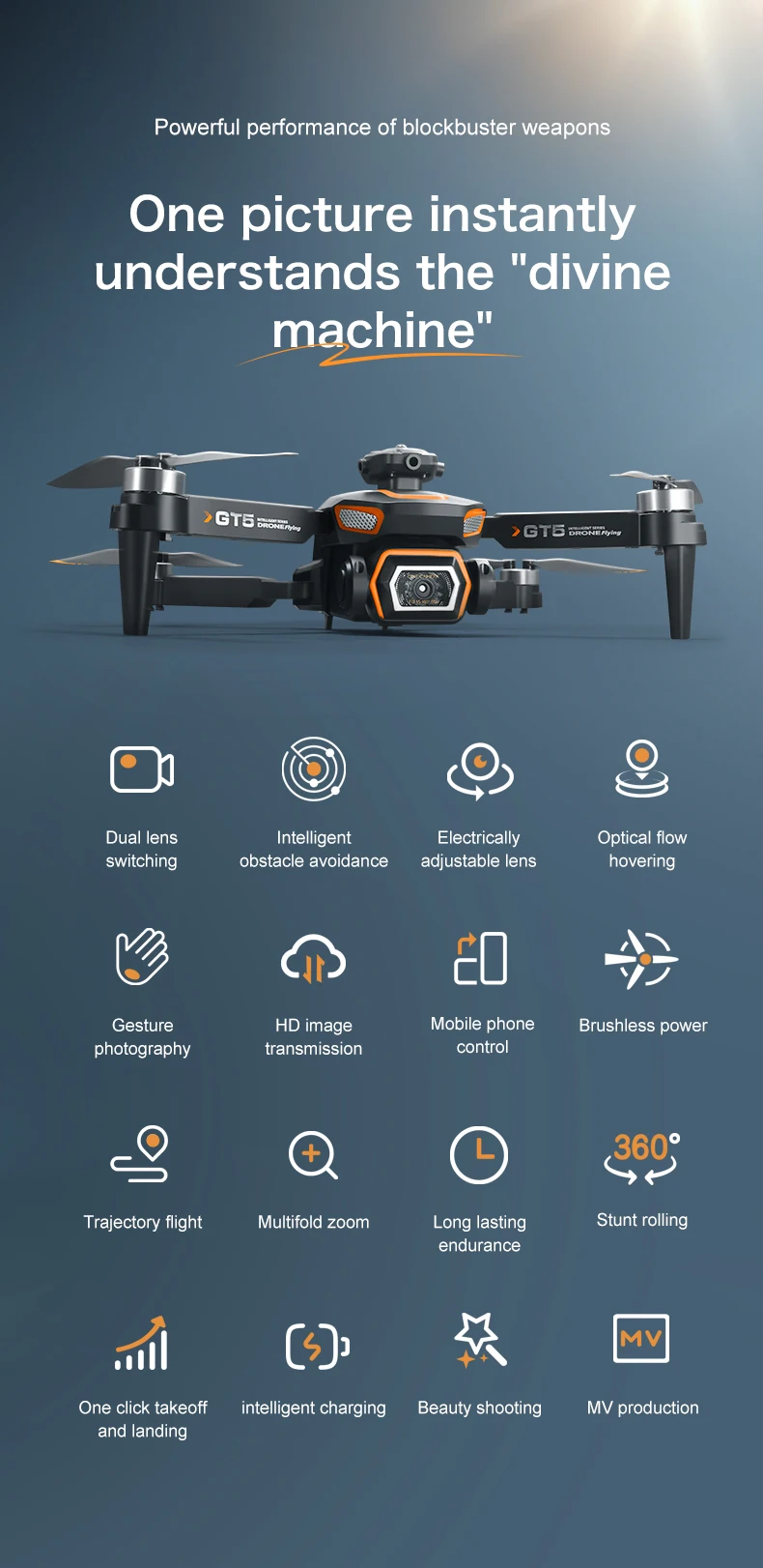2025 GT5 Mini Drone 4K 6K HD Double Camera Brushless Motor Obstacle Avoidance Aerial Photoflow Professional Foldable Quadcopter