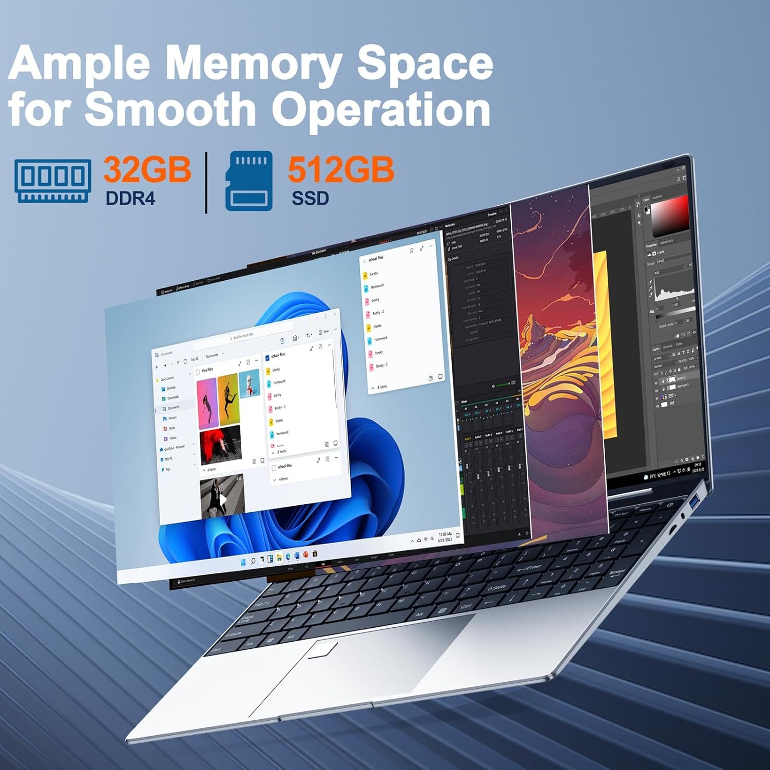 [A Powerful Machine for Your Everyday Tasks] Powered by the latest Windows 11 operating system, this windows laptop boasts a dual-channel 32GB RAM and a spacious 512GB SSD, ensuring smooth performance and ample storage space. The 2.9GHz Intel Quad-Core Processor delivers exceptional processing power, allowing you to multitask seamlessly and tackle your everyday tasks with ease.