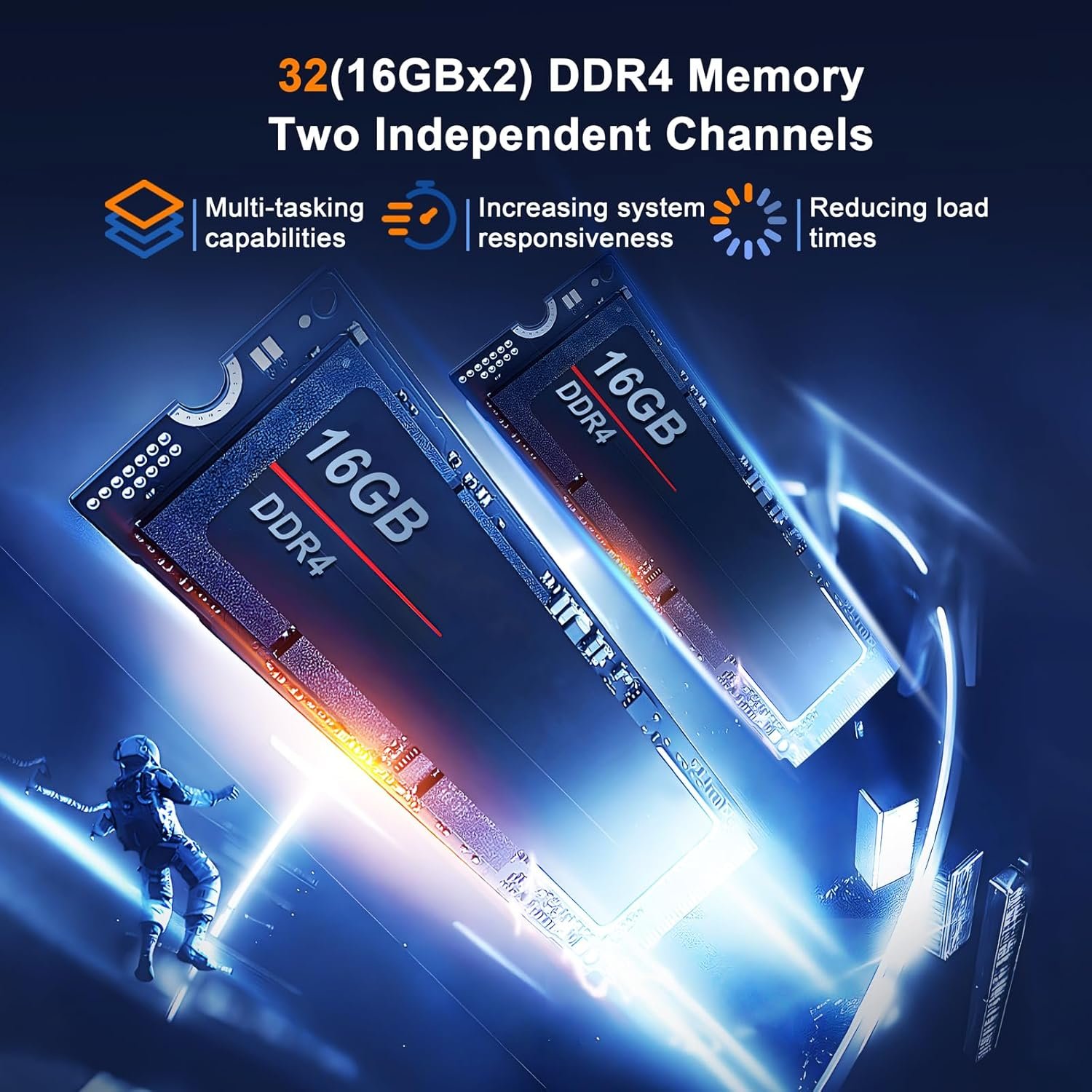 [32GB Dual Channel RAM for Smooth Operation] This traditional laptop computers features two identical 16GB DDR4 memory modules, resulting in a total of 32GB dual channel memory. This setup allows the system to access both memory modules simultaneously, significantly improving data transmission speed and multitasking capability when compared to single-channel configurations.
