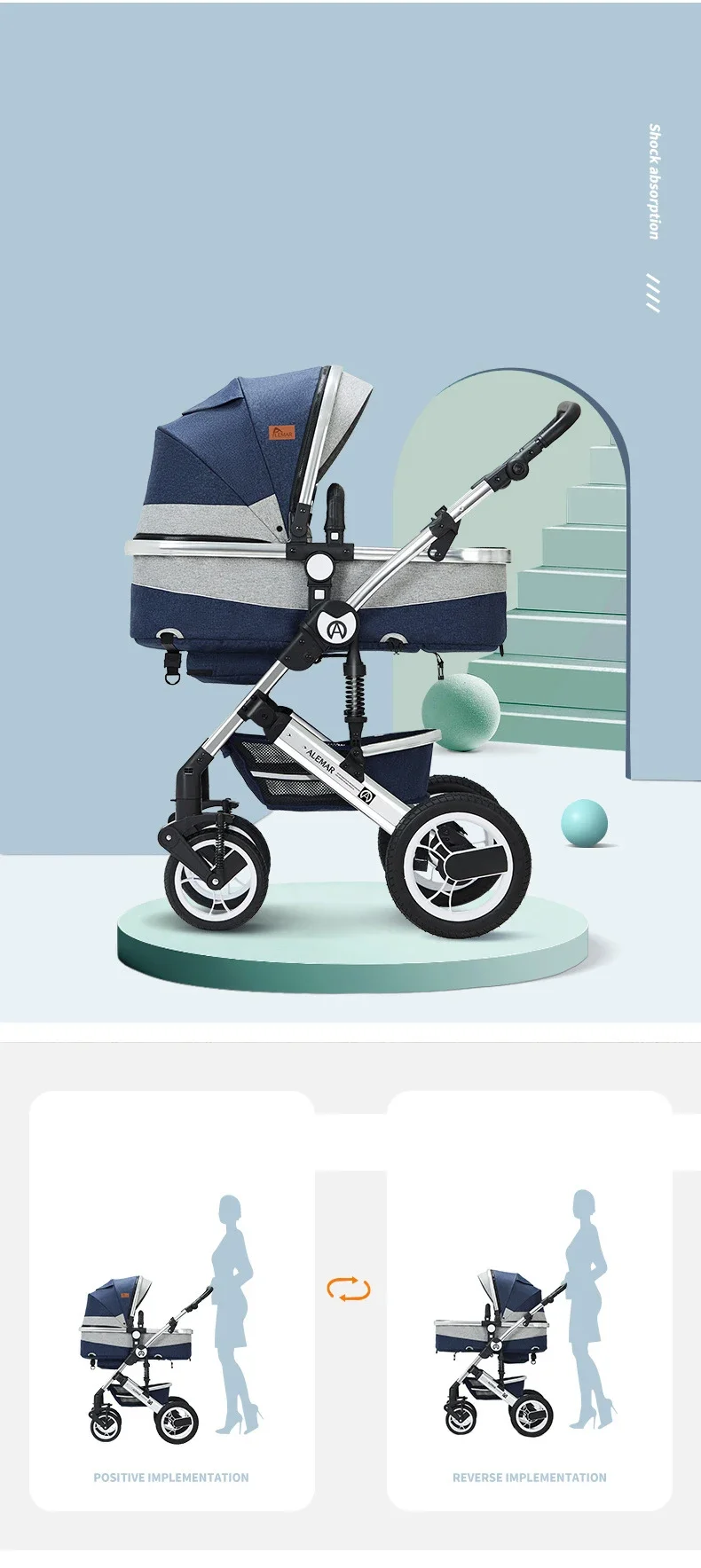 2.Two-way push:Directional and universal buckle. Directional wheels and universal wheels can be switched freely. Free conversion between two modes