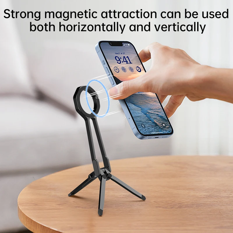 2025 New Mobile Phone Magnetic Bracket Spring Buckle Desktop 360° Rotation Portable Triangle Mobile Phone Live Broadcast Stand