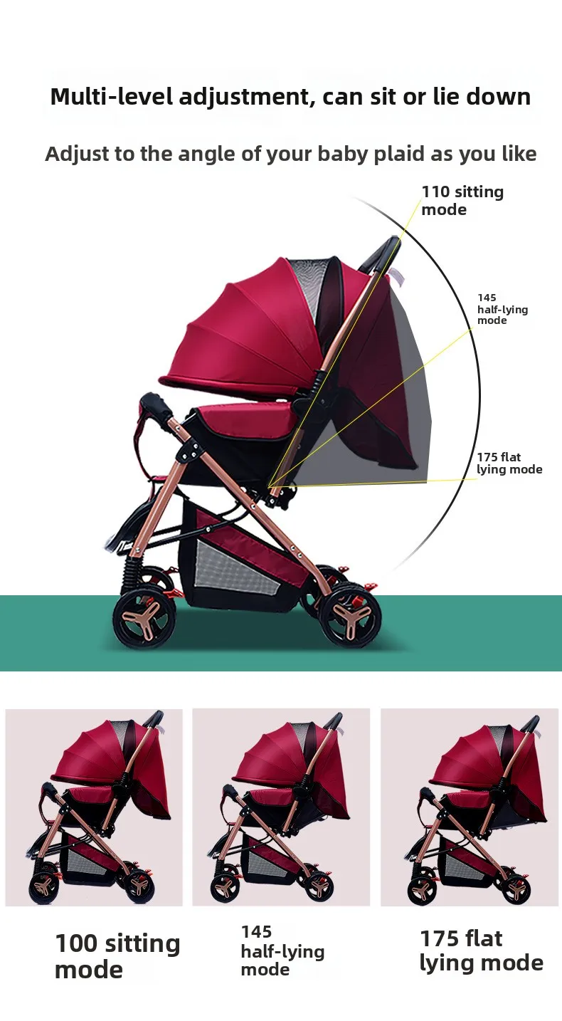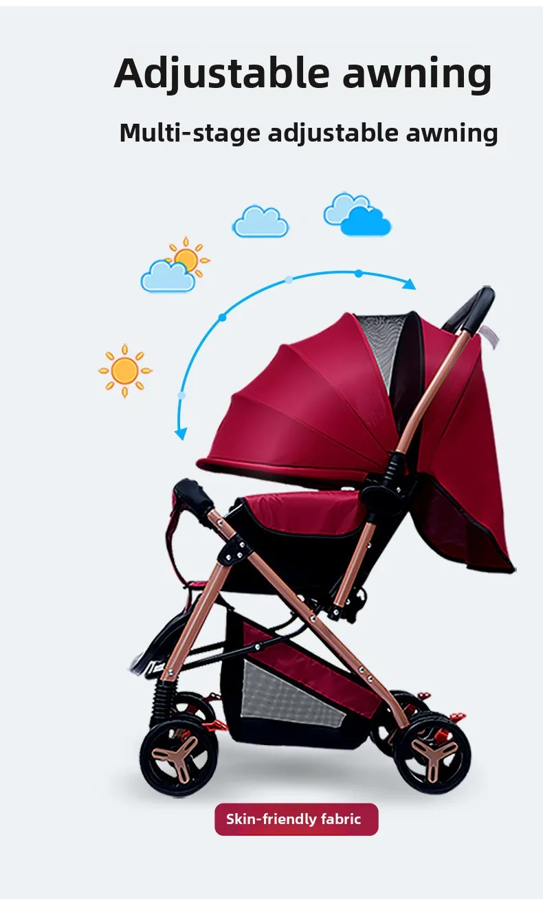 2025 New Style Four-wheel Baby Stroller Lightweight Foldable Baby Stroller with Two-way Function