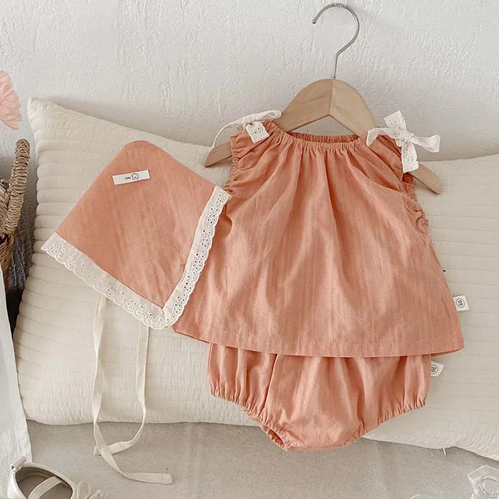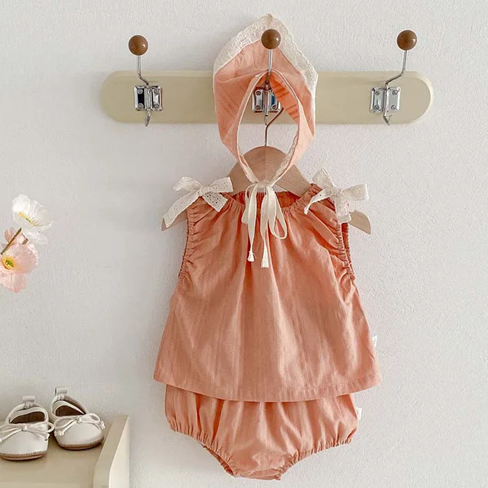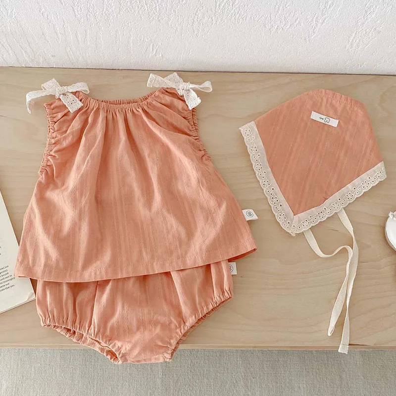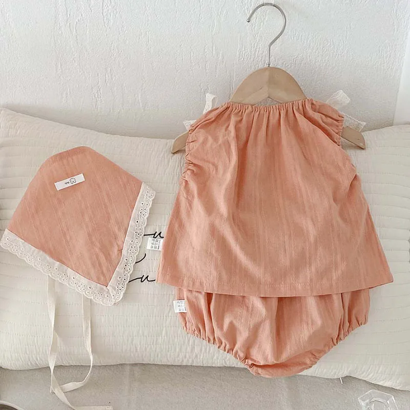 2025 New Summer Korean Style 0-3Yrs Children Clothes Suit Sleeveless Cotton Vest+PP Shorts+Hat Newborn Baby Girls Clothing Set