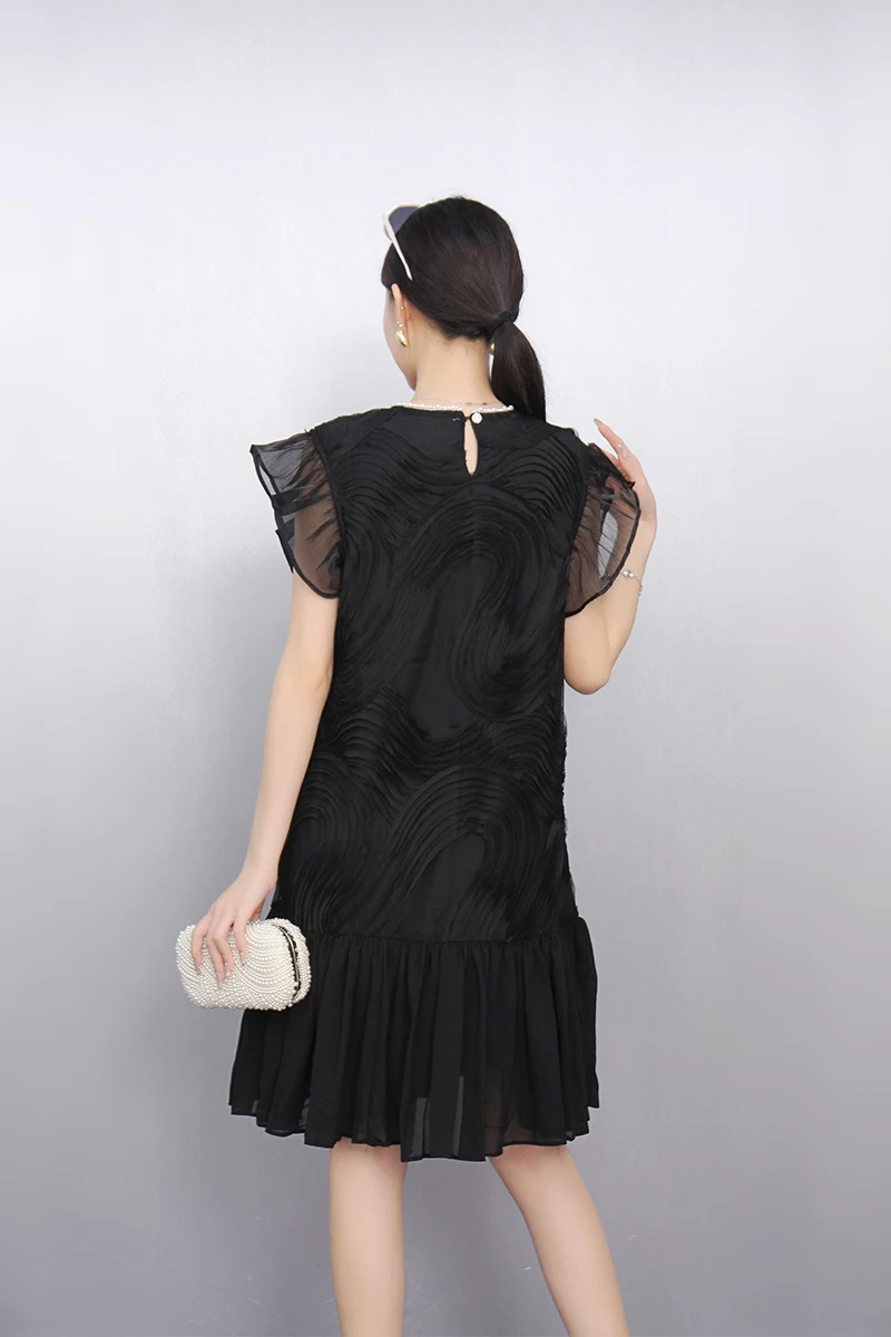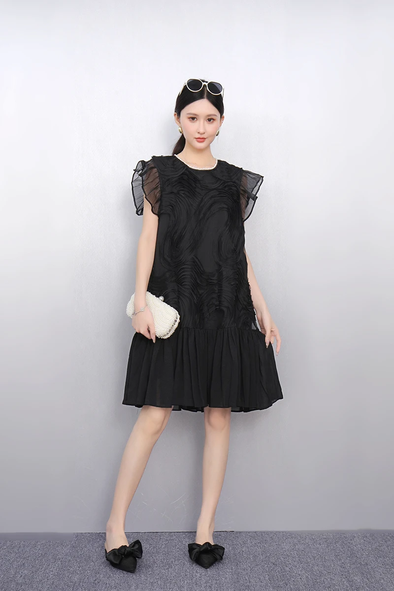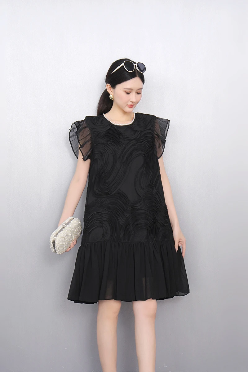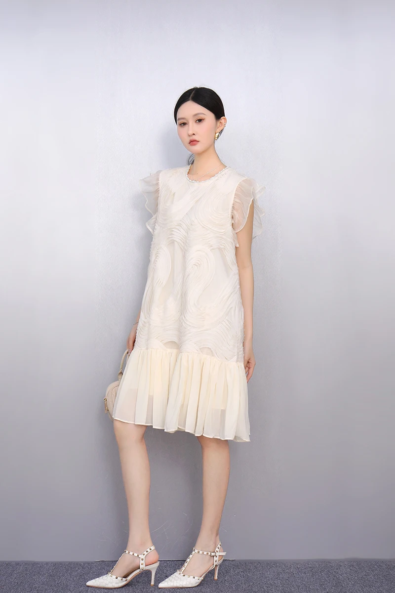 2025 Spring Summer Fashion Elegant O-Neck Mesh Loose Long Dresses Women Short Sleeve Dress Ladies J1089