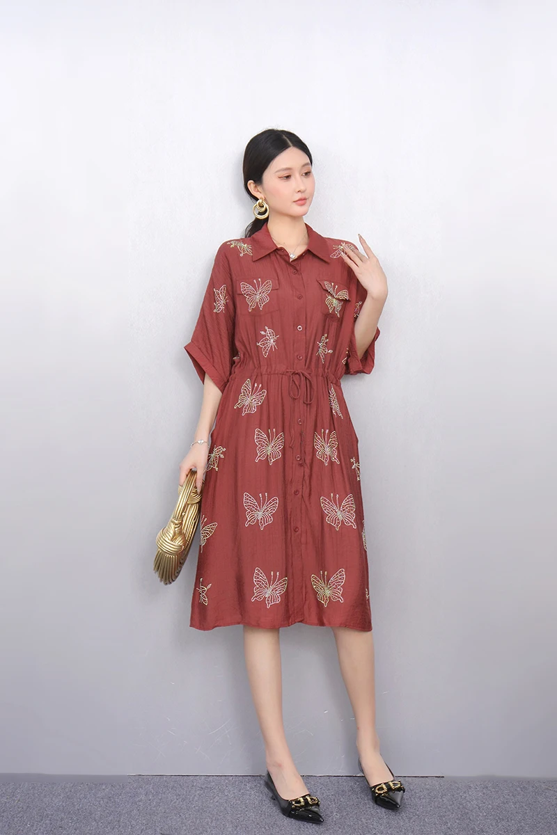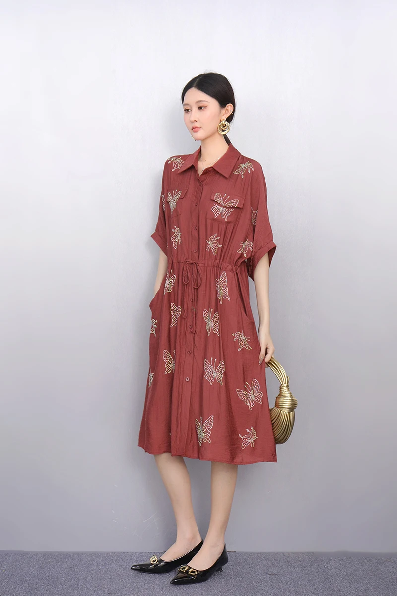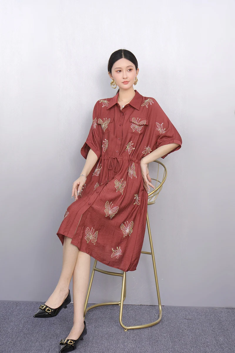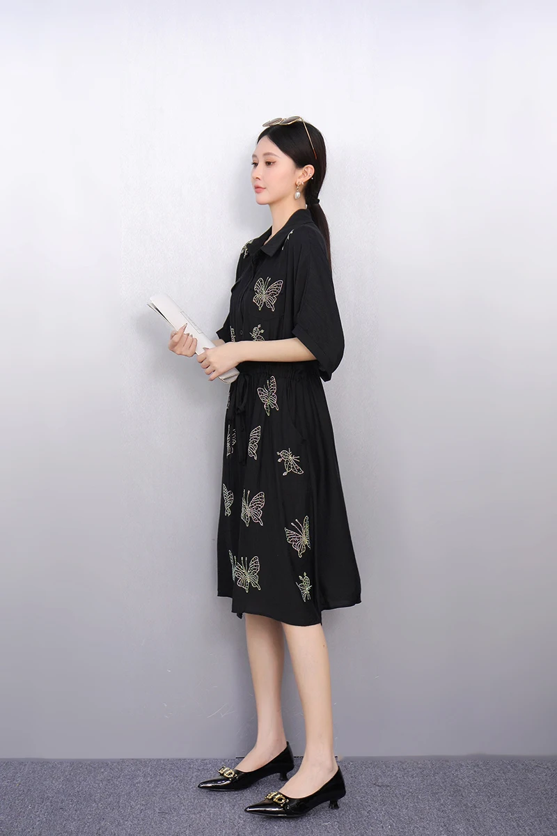 2025 Summer Fashion Elegant Retro Loose Long Dresses Women Patchwork Short Sleeve Dress Ladies J1101