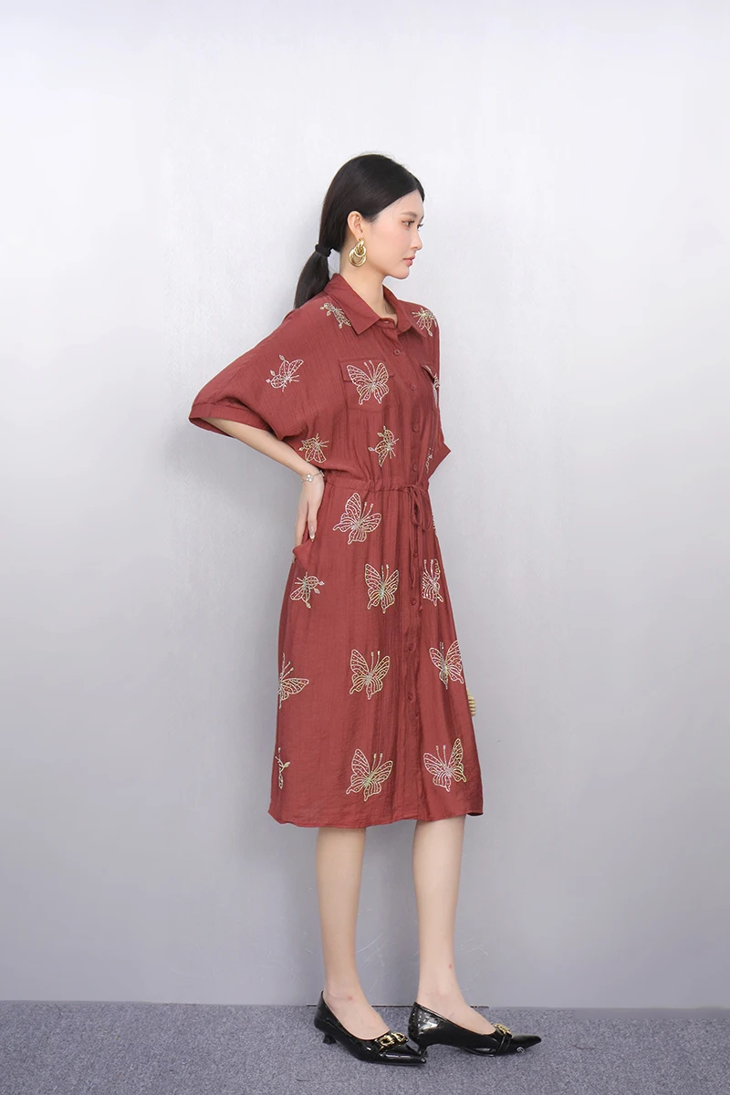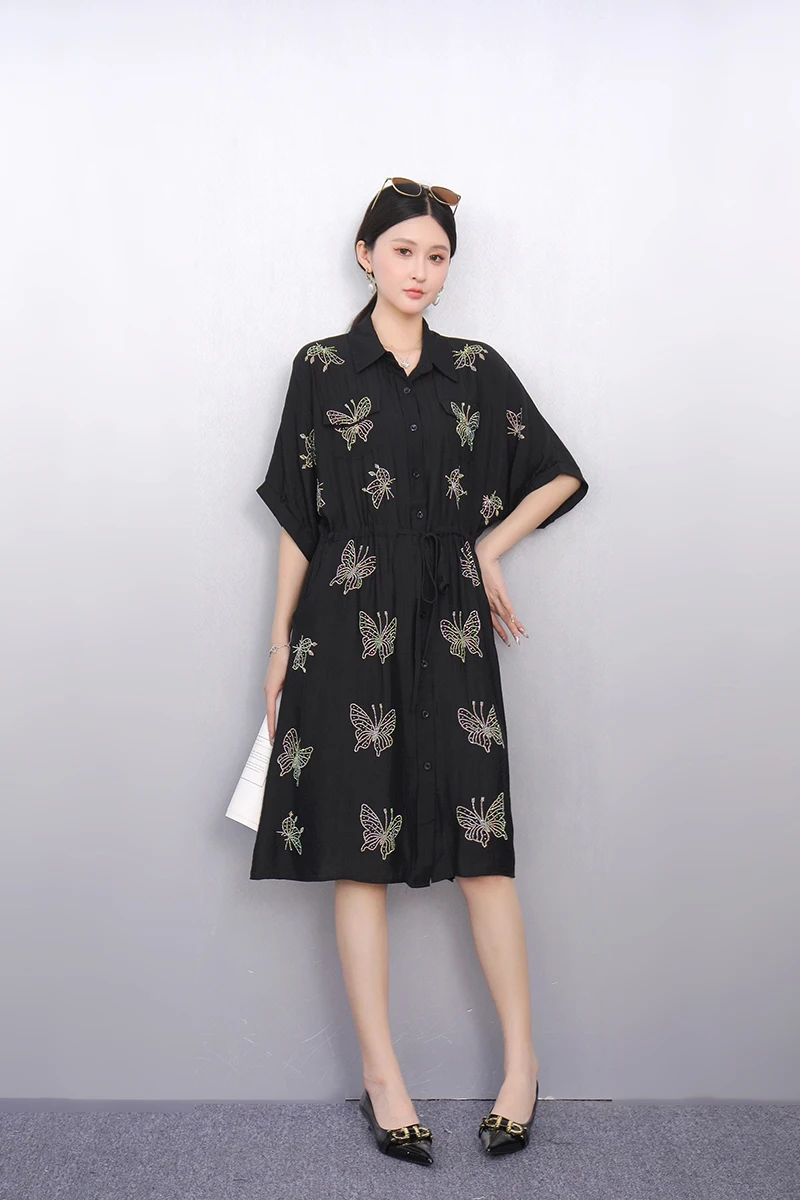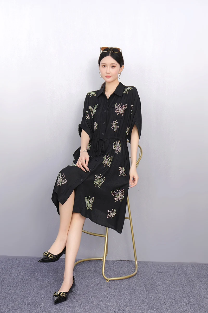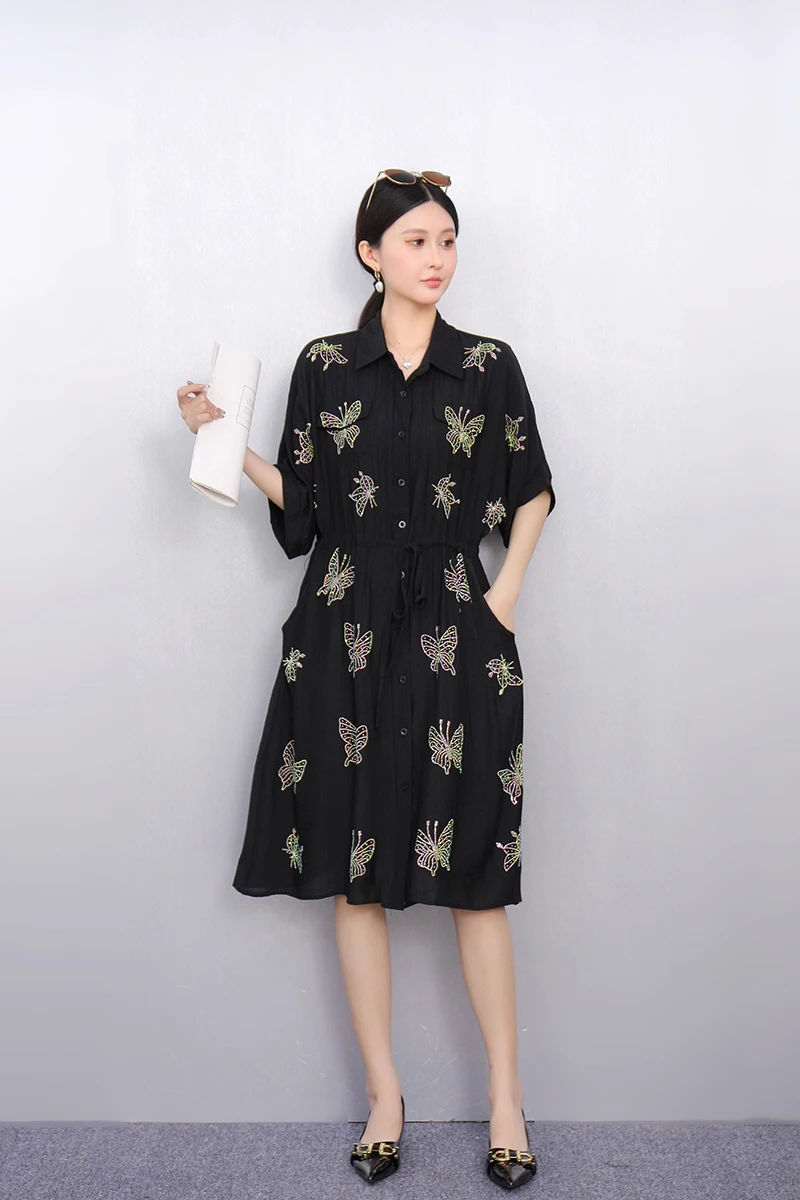 2025 Summer Fashion Elegant Retro Loose Long Dresses Women Patchwork Short Sleeve Dress Ladies J1101